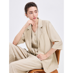 职场休闲单西 女26春夏新品 Navigare意大利小帆船通勤七分袖 小西装