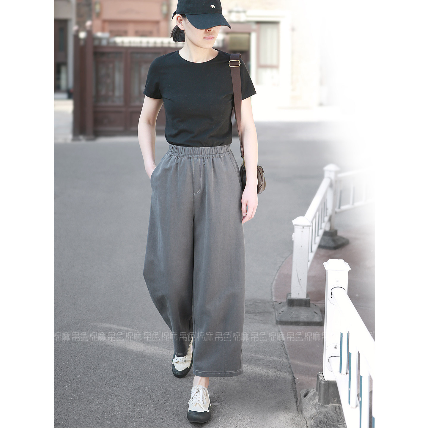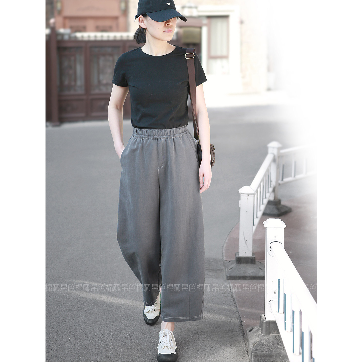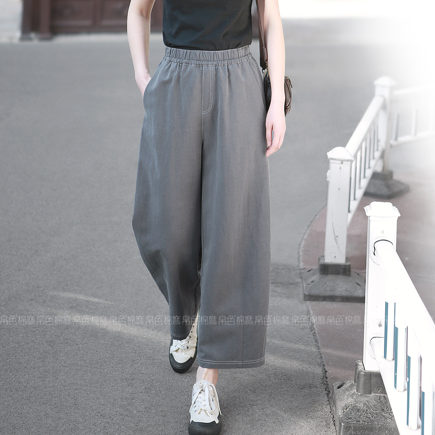 莱塞尔长裤 2026春夏新款 帛色九分裤 松紧腰休闲风阔腿裤 宽松萝卜裤