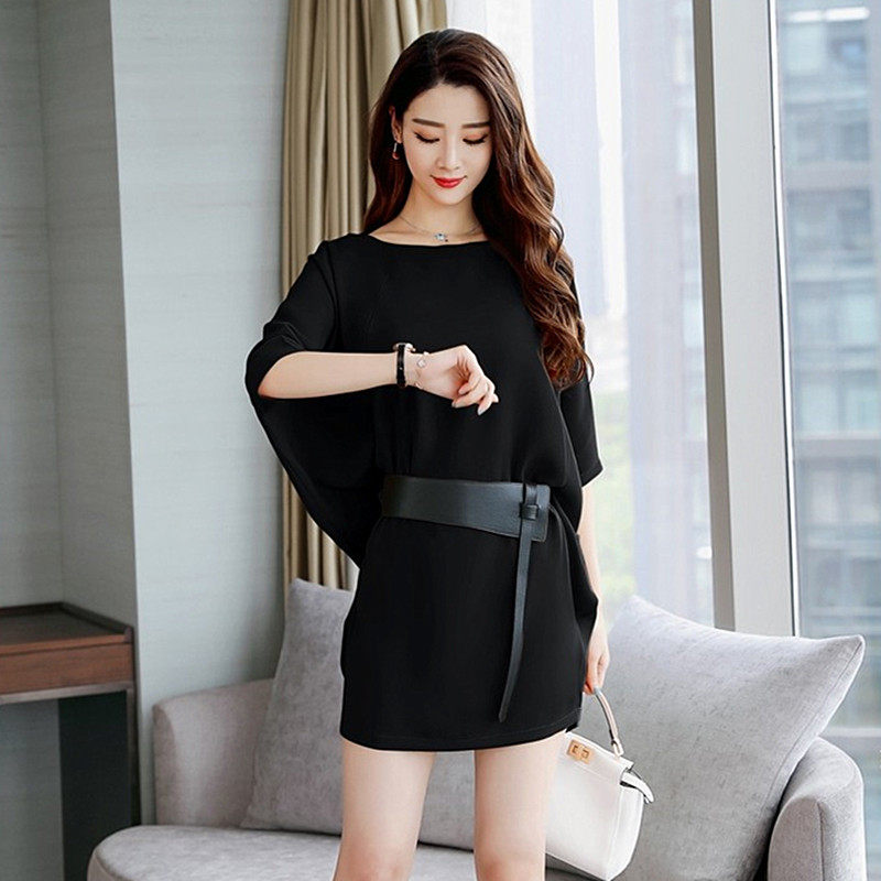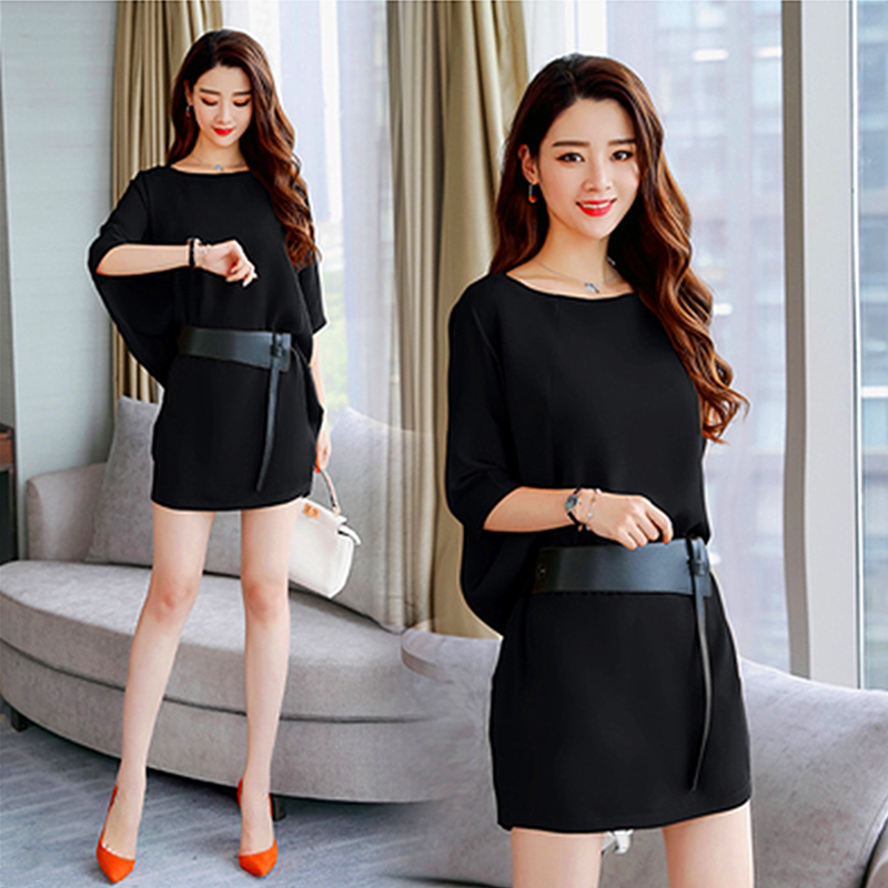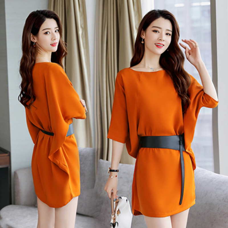 连衣裙女2026夏季 宽松显瘦气质收腰蝙蝠袖 新款 大码 裙子 妈妈装 时尚