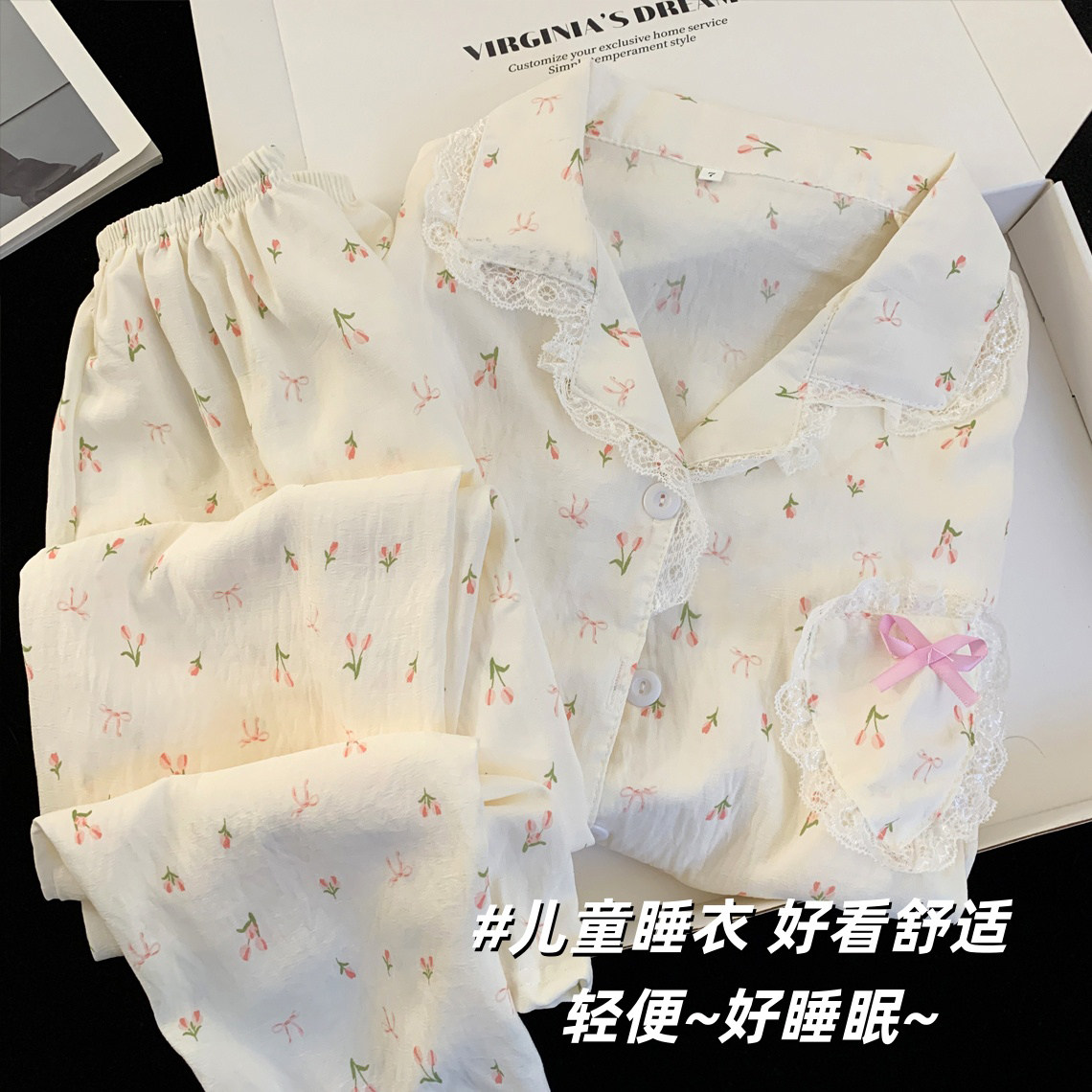 翻领可外穿中大童家居服套装 卡通可爱春夏季 裤 女童睡衣云朵棉长袖