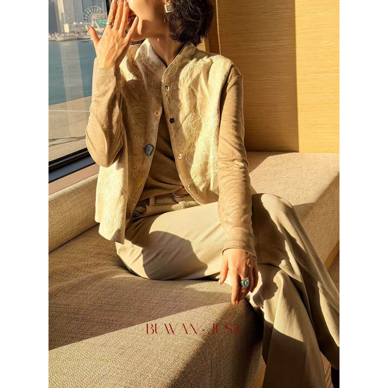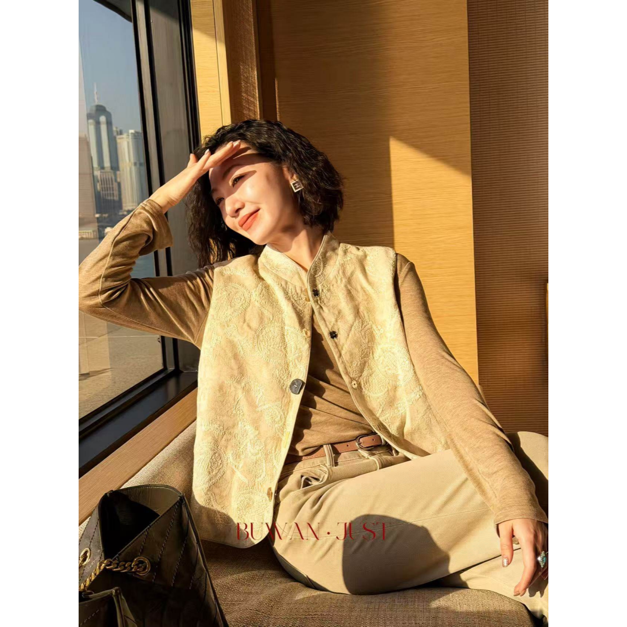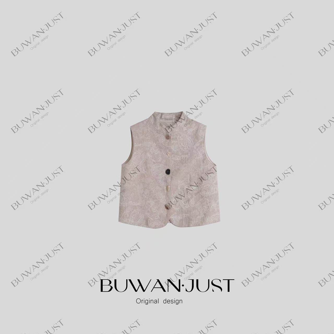 不晚BUWANJUST 高品亚麻提花手工绣精致感马甲B1173 国色天香