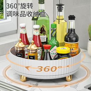 厨房可旋转调料置物架油盐酱醋收纳调味品转盘多功能调料盒水果盘