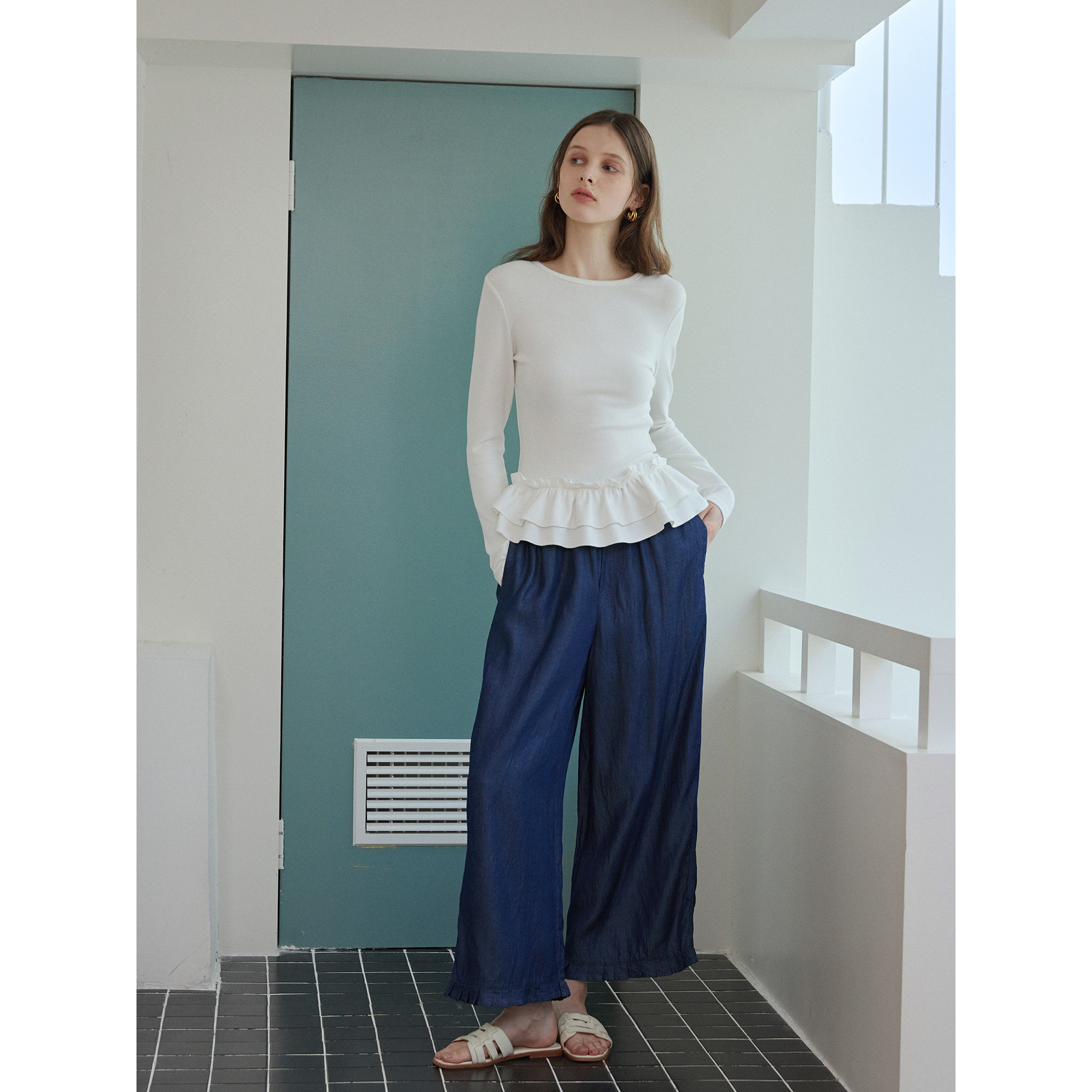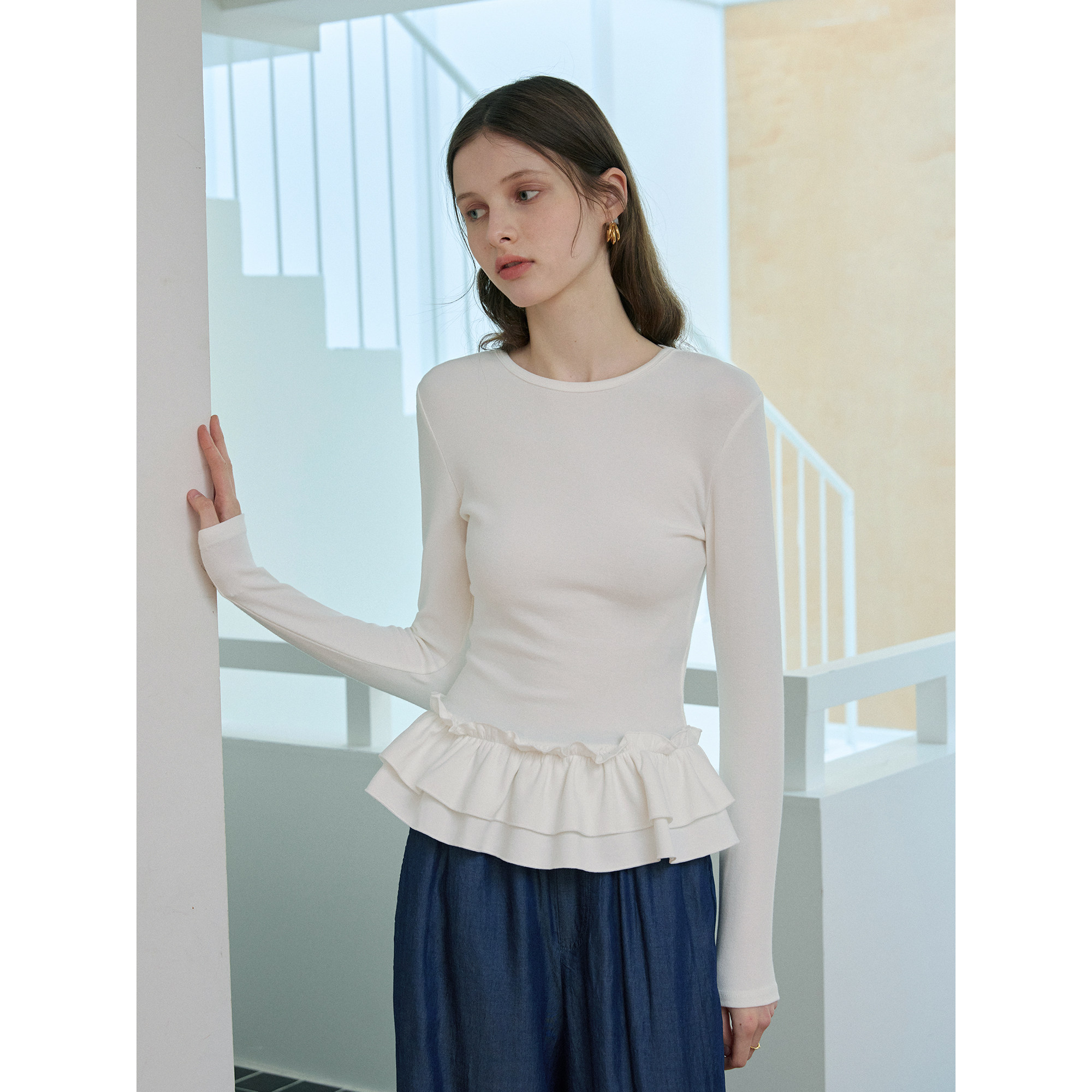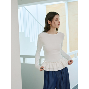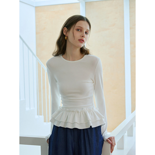 T恤叠穿内搭正肩上衣 长袖 浪漫荷叶边亲肤柔软圆领修身 显瘦打底衫