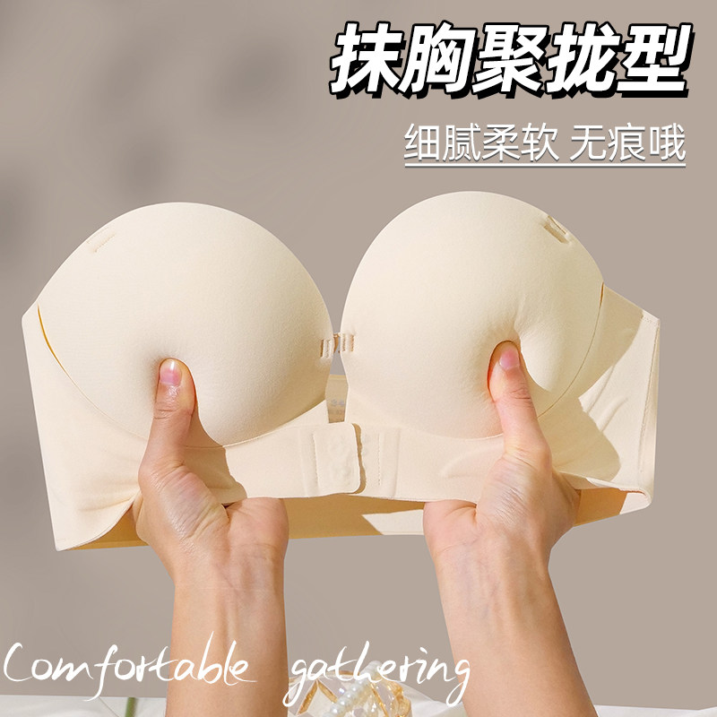 无肩带内衣女防滑聚拢小胸聚拢隐形前扣无痕抹胸防走光裹胸文胸罩