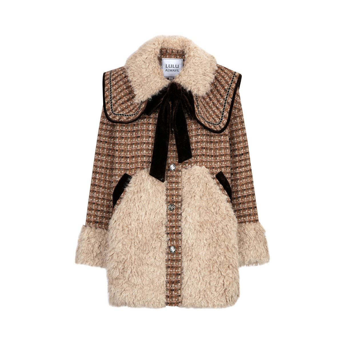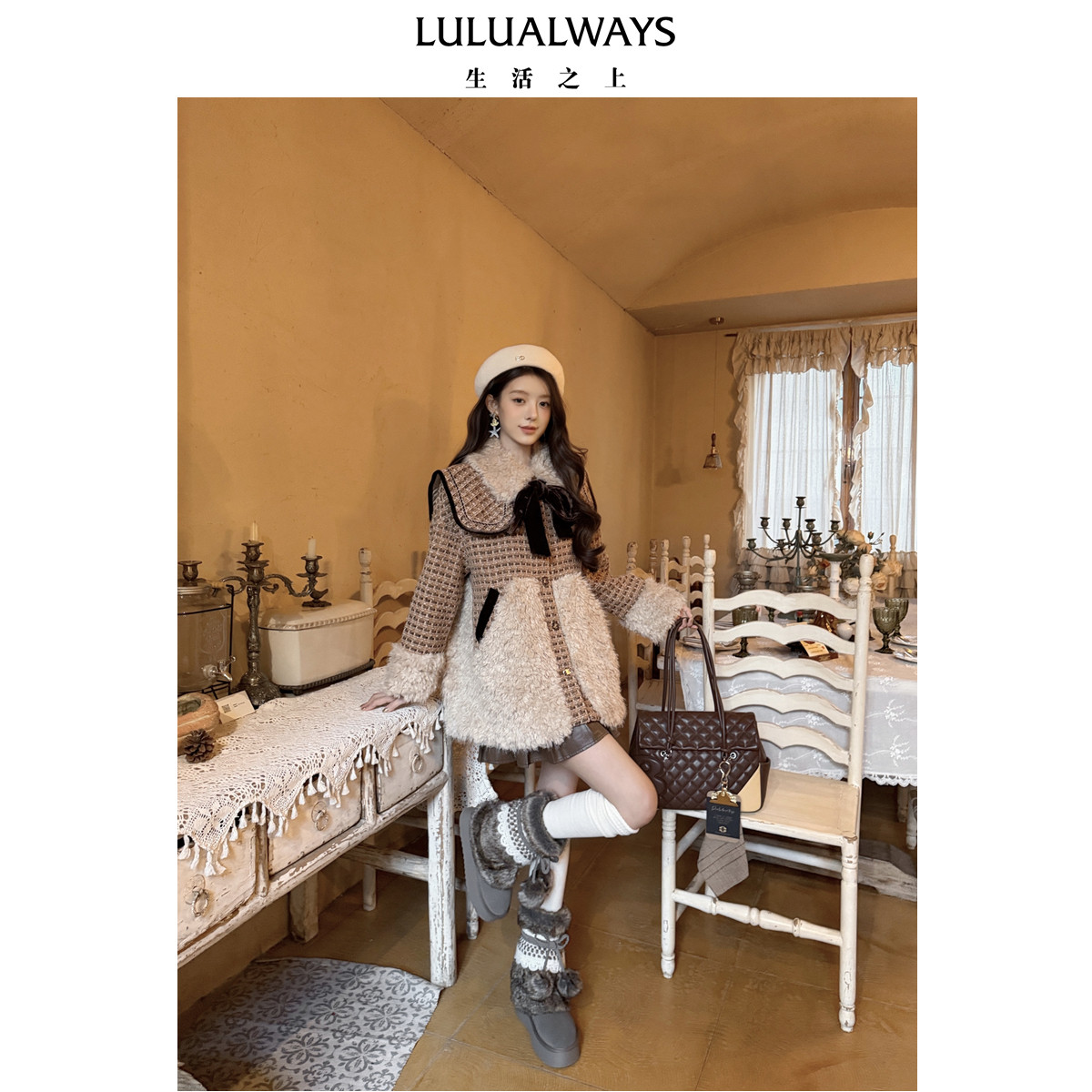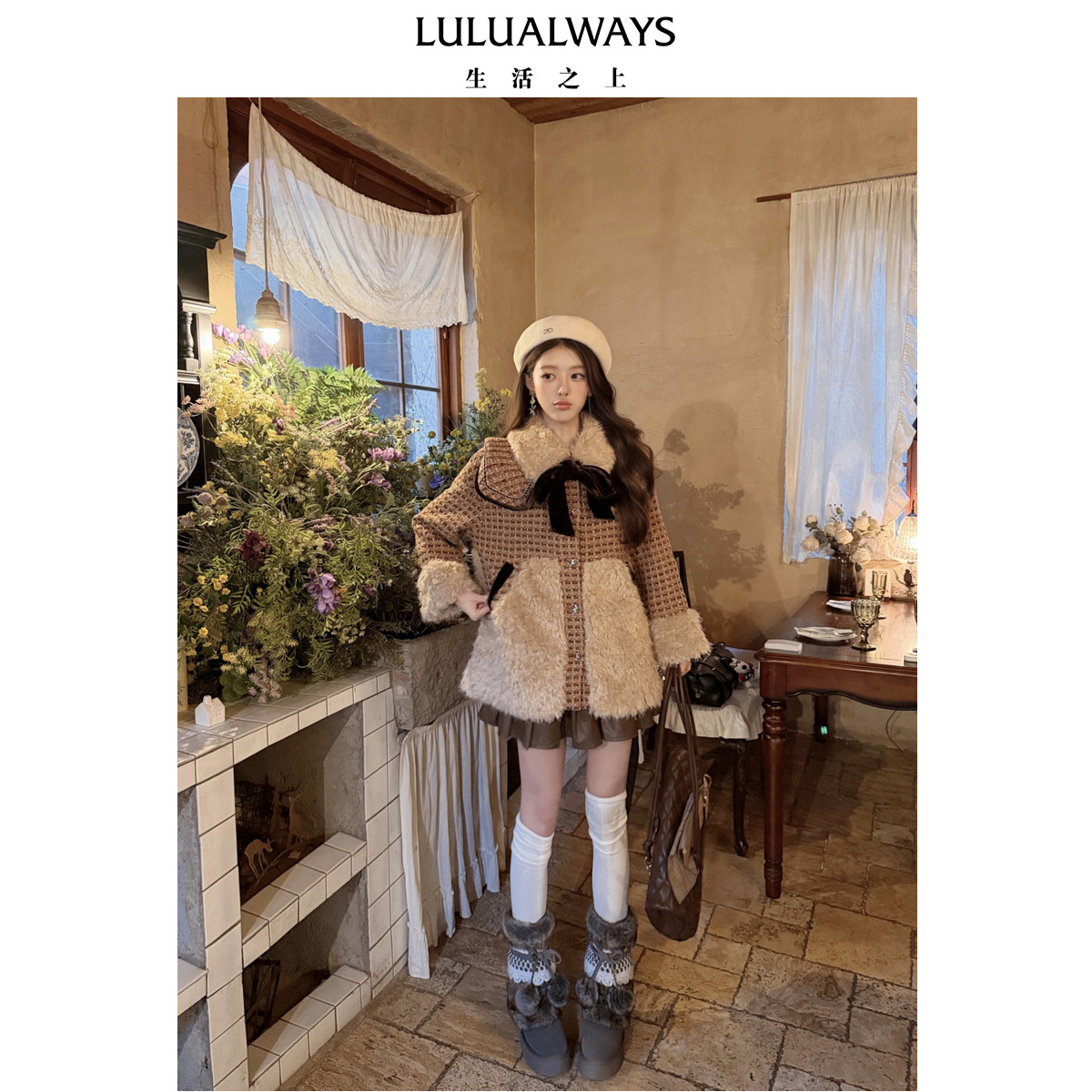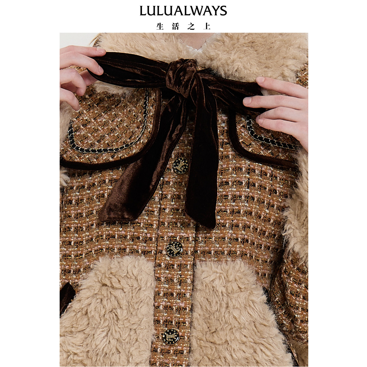 新款 25冬季 甜美气质毛绒蝴蝶结大衣长外套 商场同款 LULUALWAYS