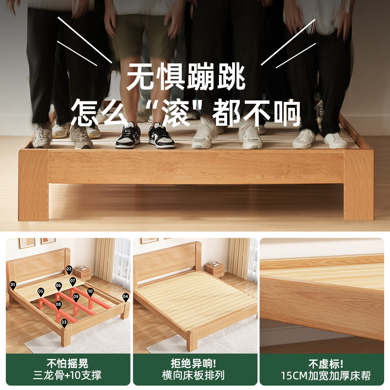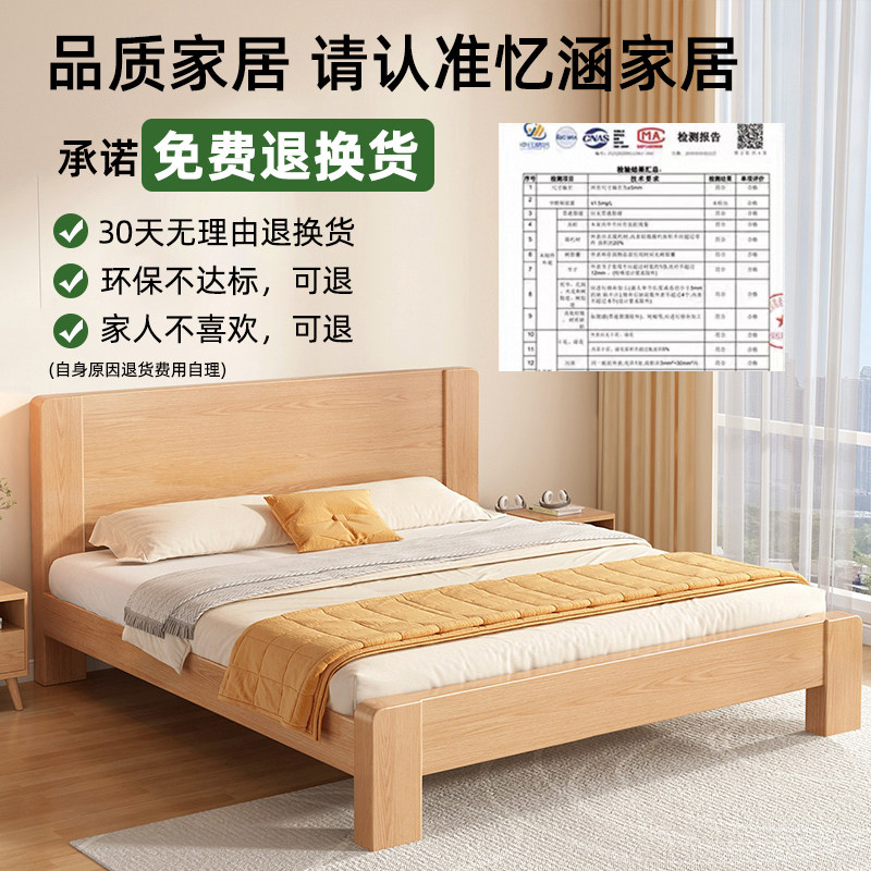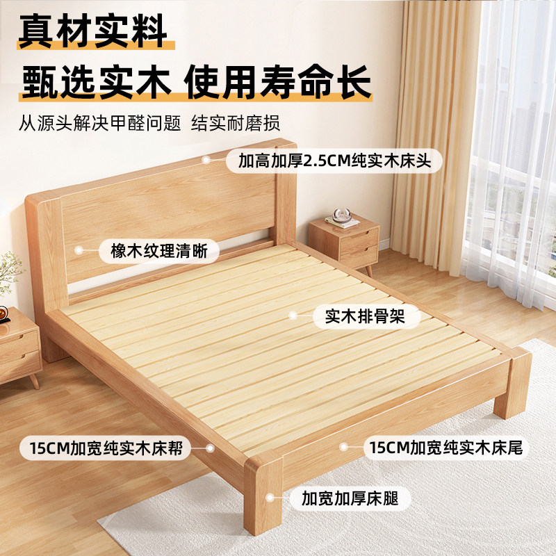 全实木床1米8双人床家用卧室大床原木橡木简约出租房1.2米单人床