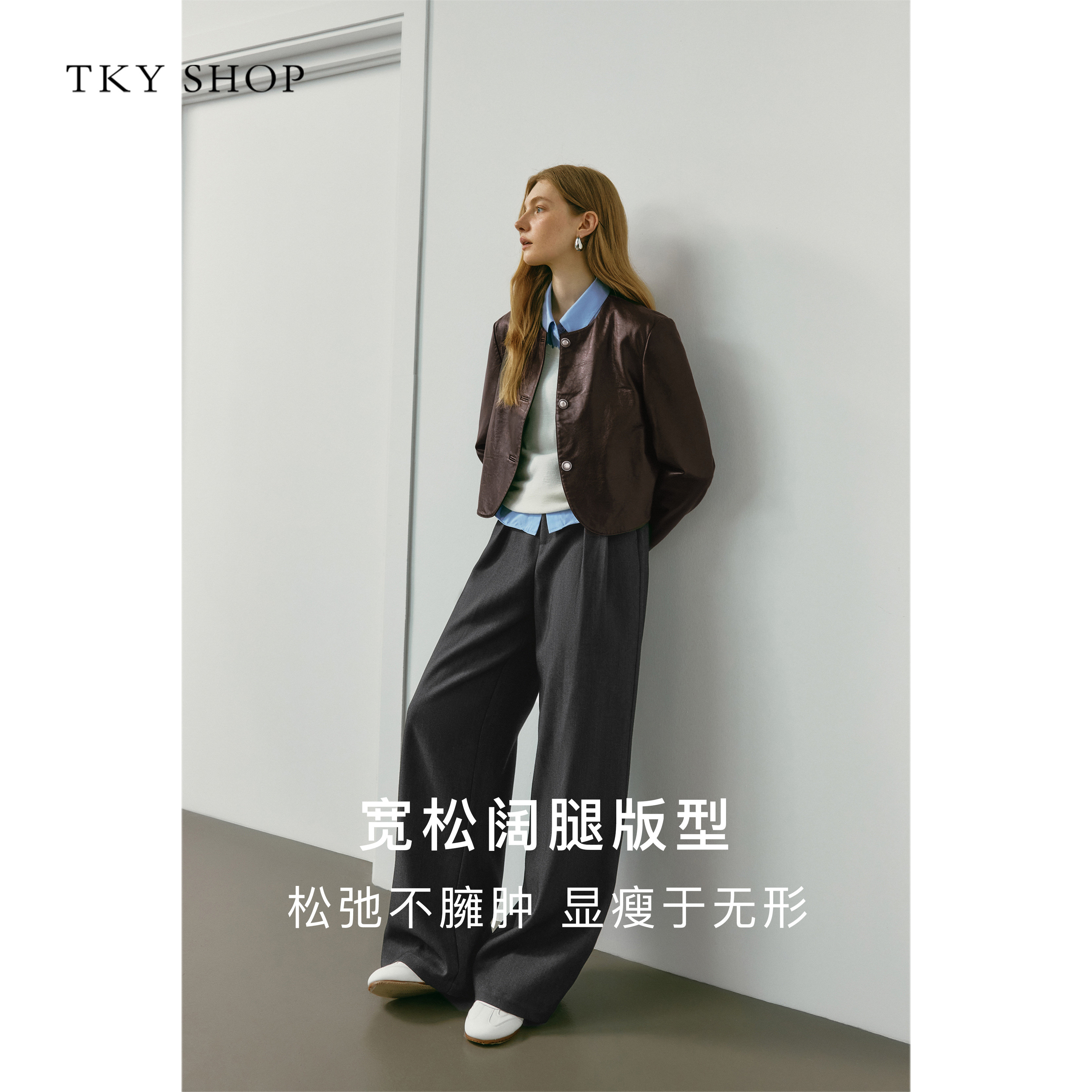 商场同款 休闲裤 TKY 2025秋新款 10I1PA04N050 SHOP高腰直筒阔腿裤
