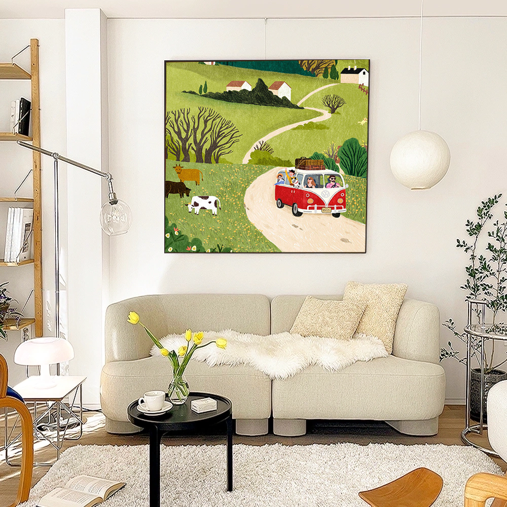 旅途美景北欧风格 饰画挂画 绿色油画高级感艺术卧室餐厅玄关客厅装