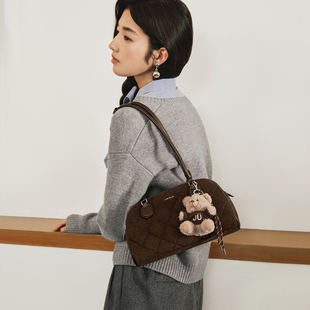 欧时纳华夫法棍包2025新款 棕色波士顿保龄球包通勤枕头单肩腋下包