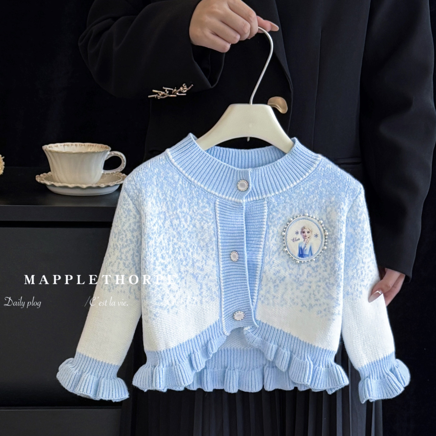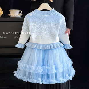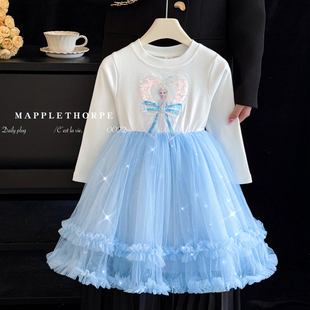 女童爱莎连衣裙秋季 冰雪奇缘艾莎公主裙儿童毛衣外套裙子 2025新款