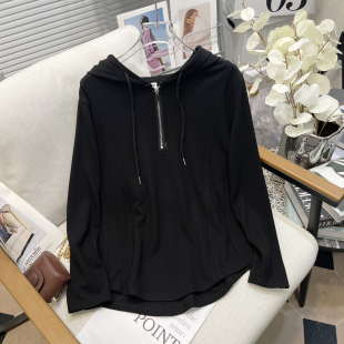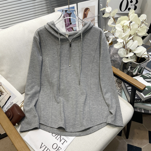 时尚 大码 卫衣女胖mm爆款 早秋拉链连帽短款 洋气内搭T恤上衣 女装