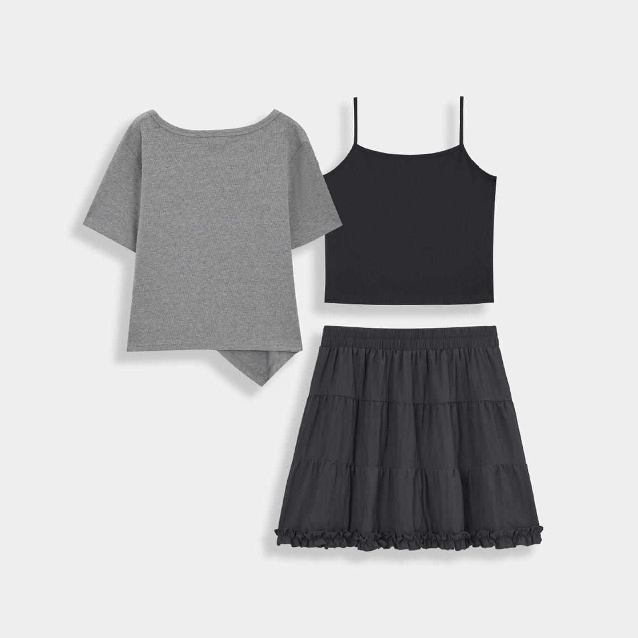 大码 女装 2025夏季 IEF 法式 微胖 新款 甜美少女风上下套裙 爱依服