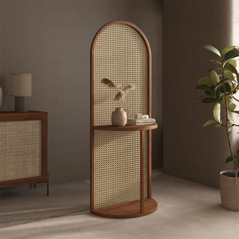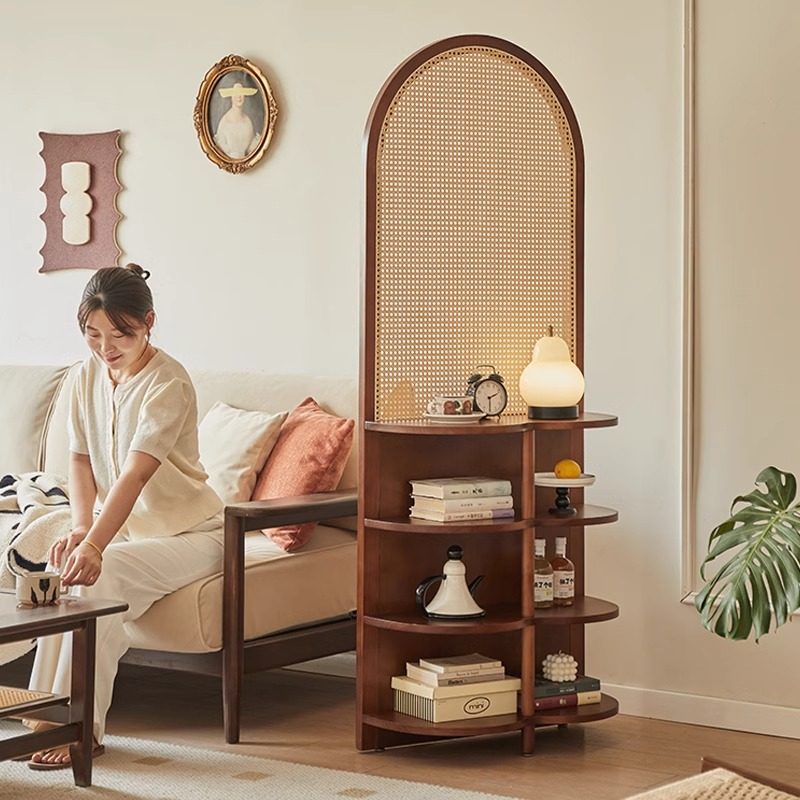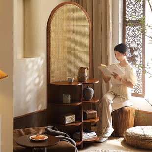 中式 置物遮挡 实木藤编屏风可移动客厅中古风简约座屏入户隔断日式