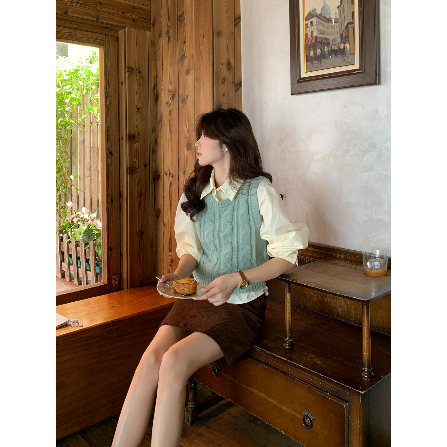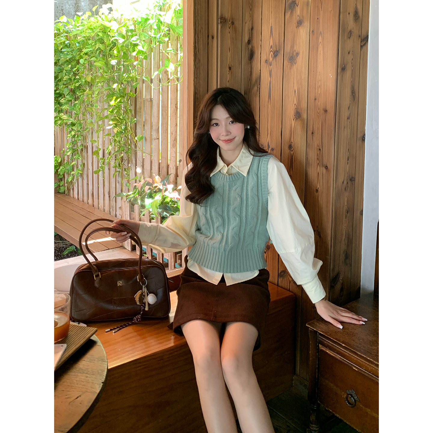 Yukiss 复古撞色羊羔毛圈圈毛呢马甲背心女秋韩系慵懒百搭上衣