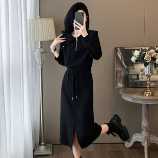 上衣半身裙时尚 减龄显瘦黑色长袖 两件套 秋季 欧货气质卫衣套裙女装