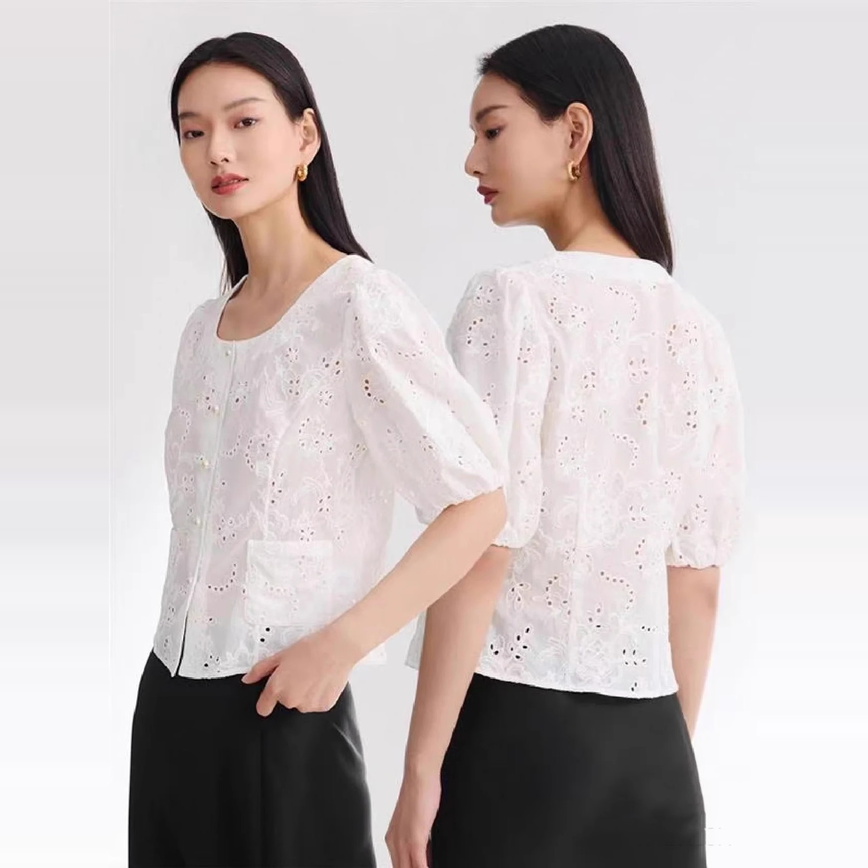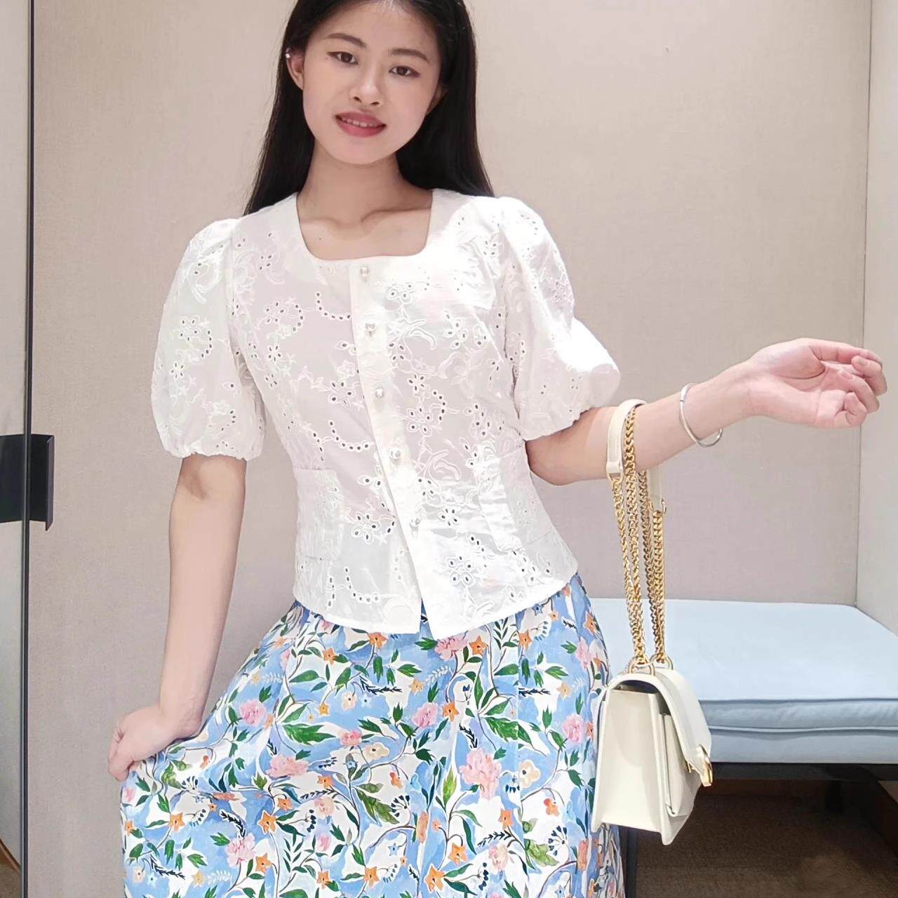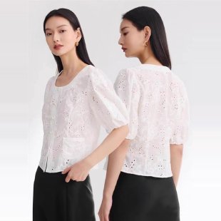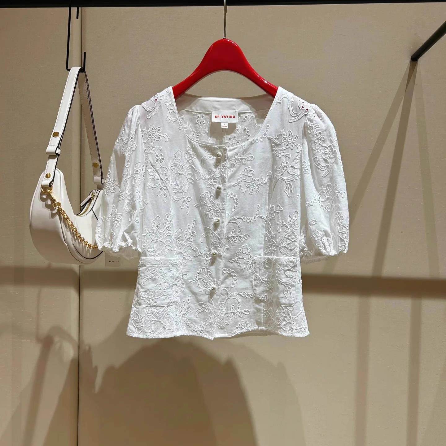 EGJEC2207A 镂空重工刺绣纯棉白衬衫 1999 泡泡袖 EP春夏新品