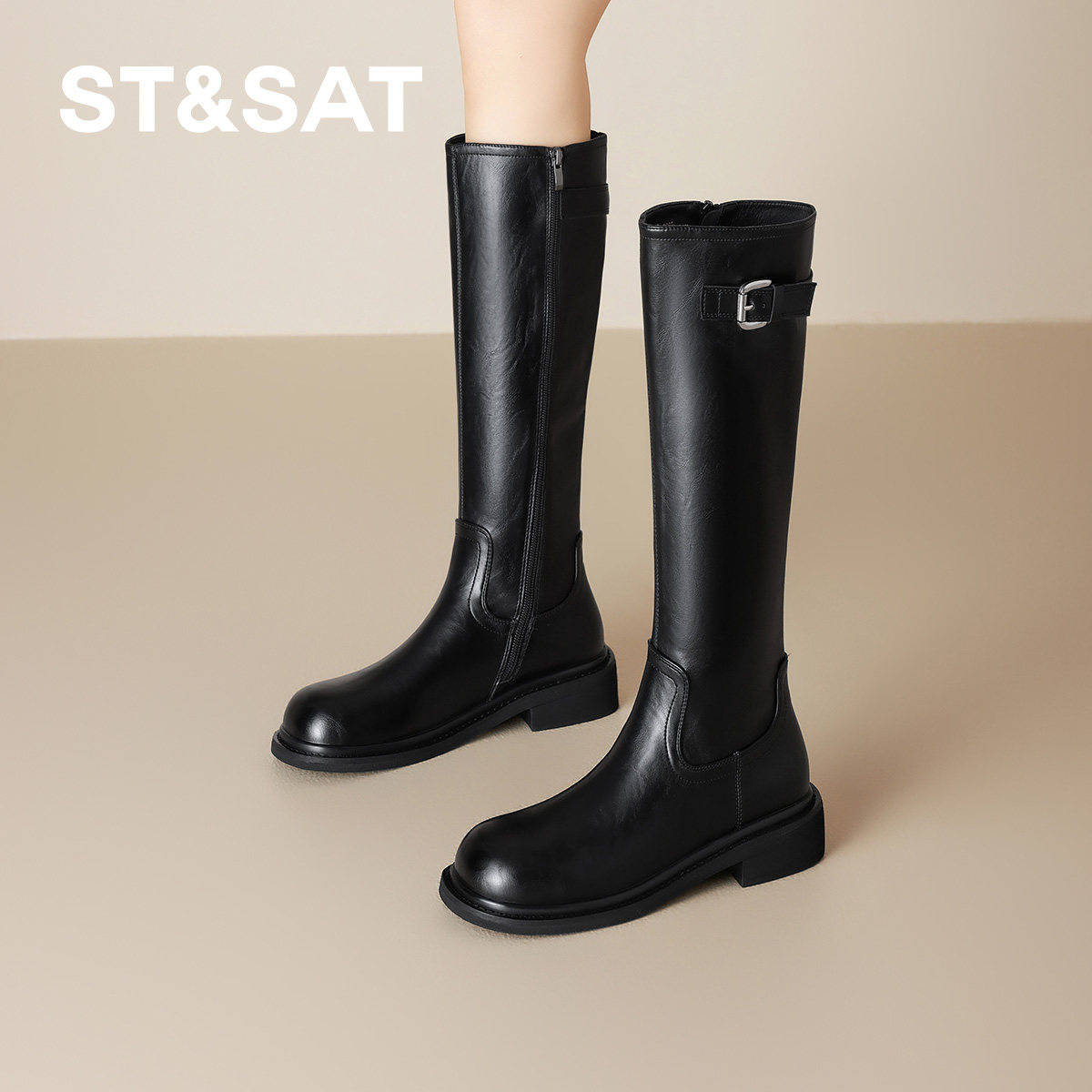 直 星期六时尚 高筒靴子长筒靴骑士靴 秋季 百搭瘦瘦靴女2025新款