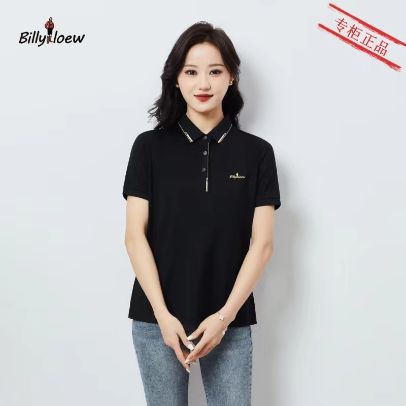 T恤打底衫 春秋季 女士长袖 大码 宽松翻领洋气Polo中年妈妈上衣 新款