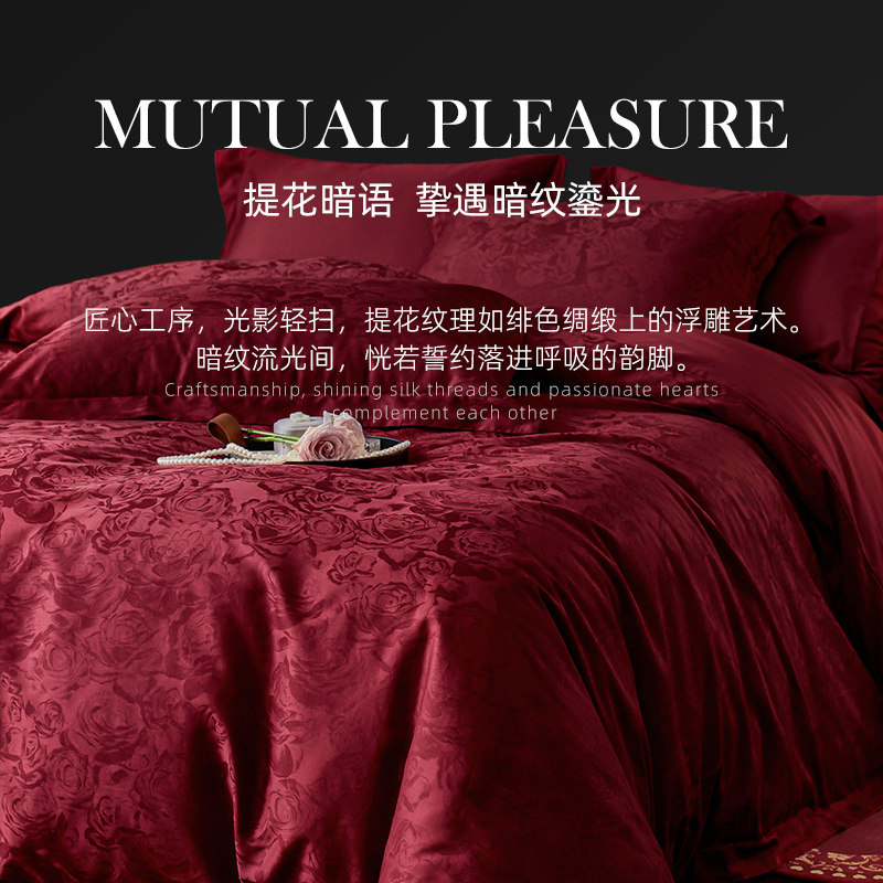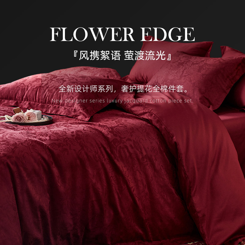 斯得福高档婚庆四件套大红色纯棉床单被套结婚陪嫁床上用品高级感