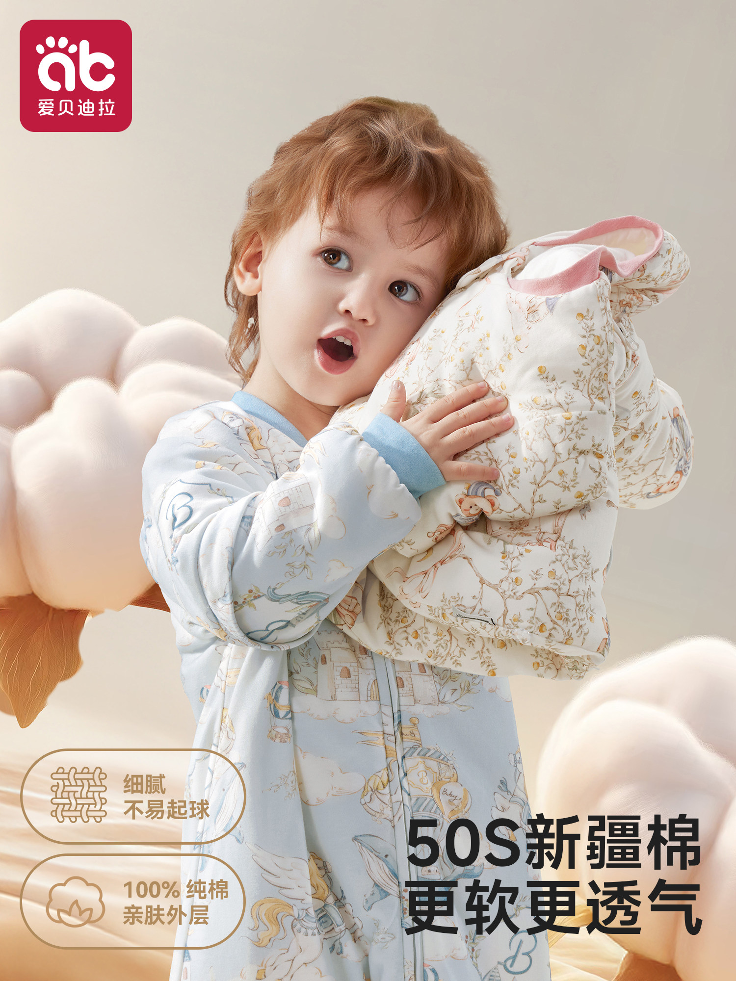 宝宝纯棉儿童恒温防踢被四季 婴儿睡袋分腿秋冬款 通用 肽柔 贝肽斯