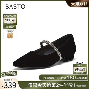 女单鞋 百思图2025秋季 法式 尖头粗跟绒面玛丽珍鞋 W0128AQ6 商场新款