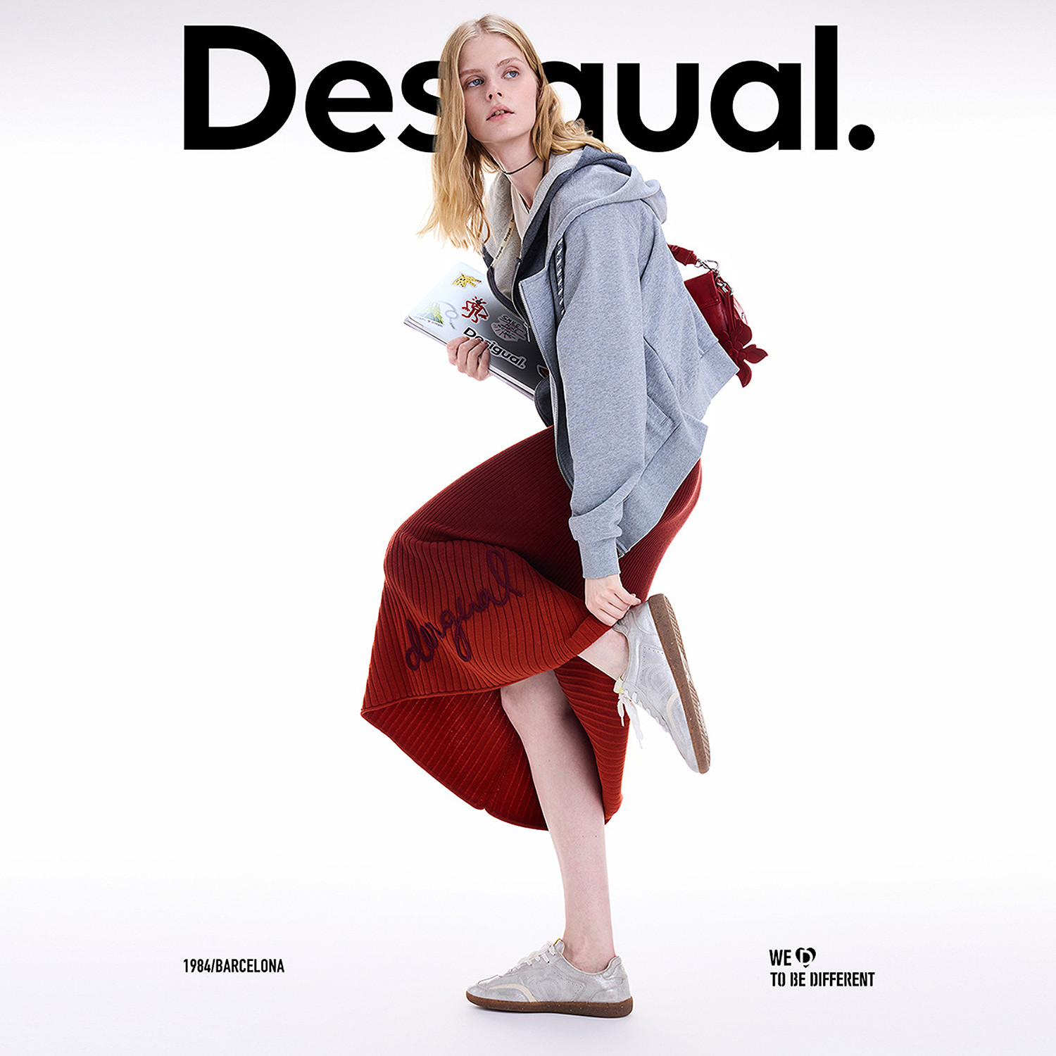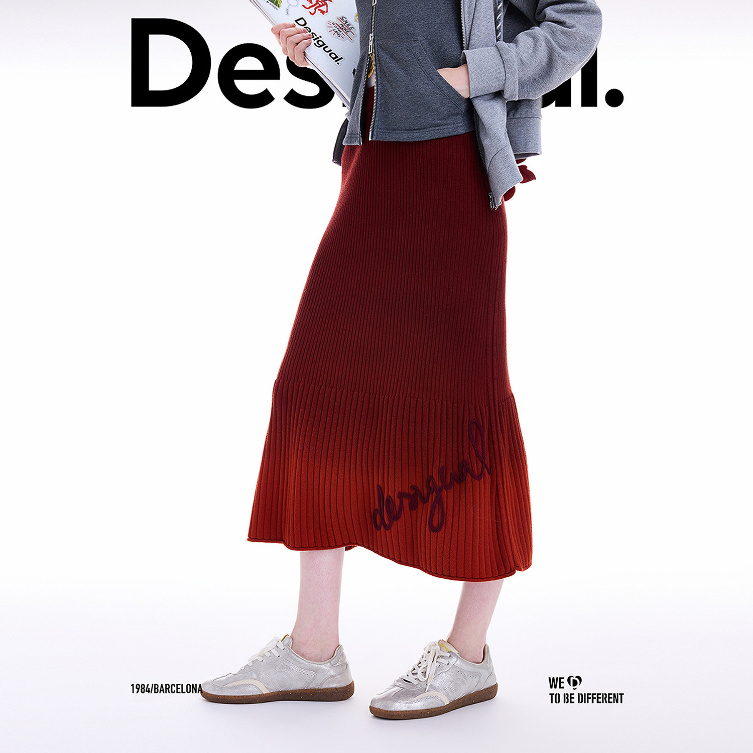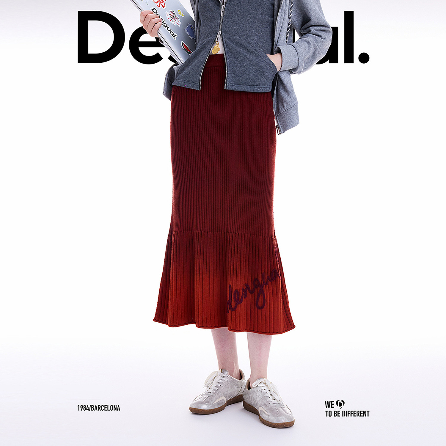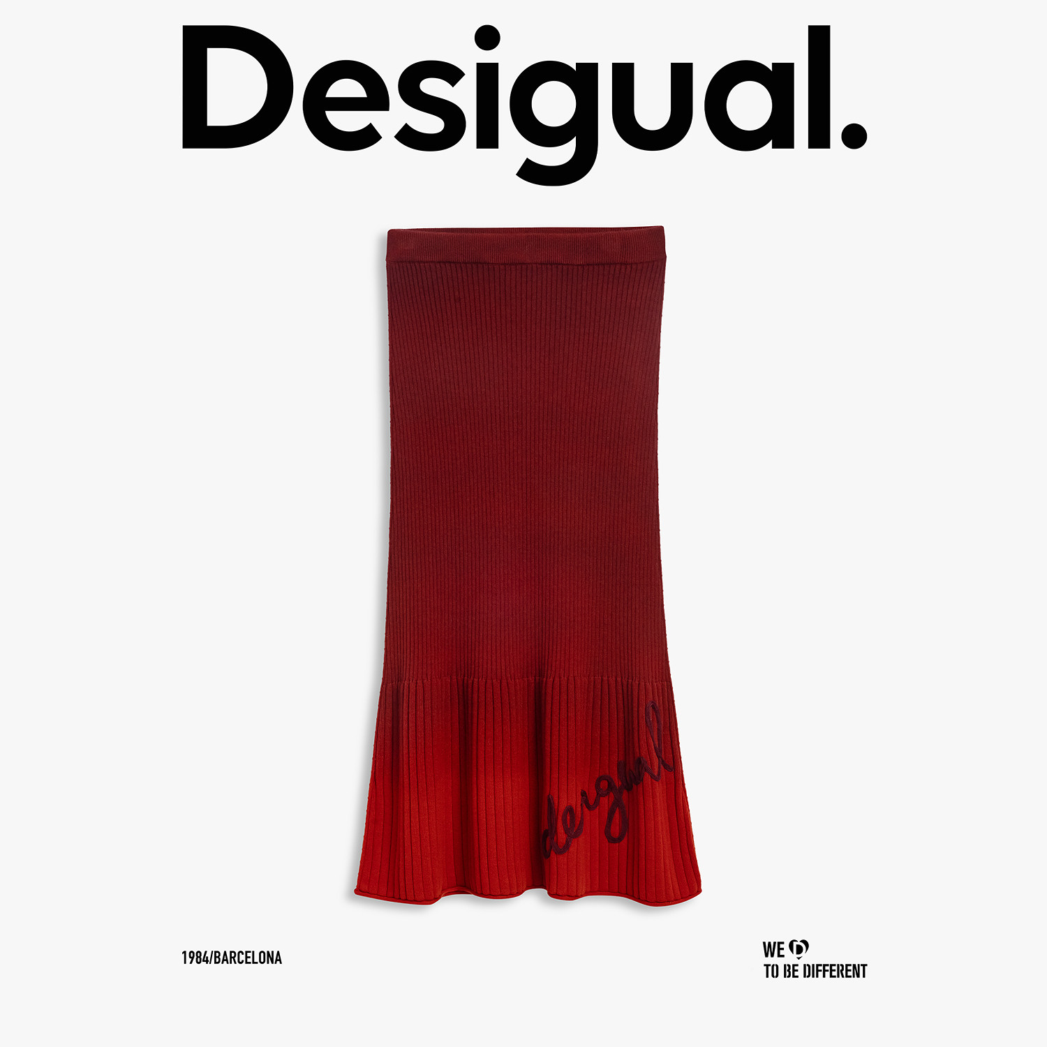 Desigual25秋冬新品 吊染渐变针织坑条logo绣花鱼尾半身裙