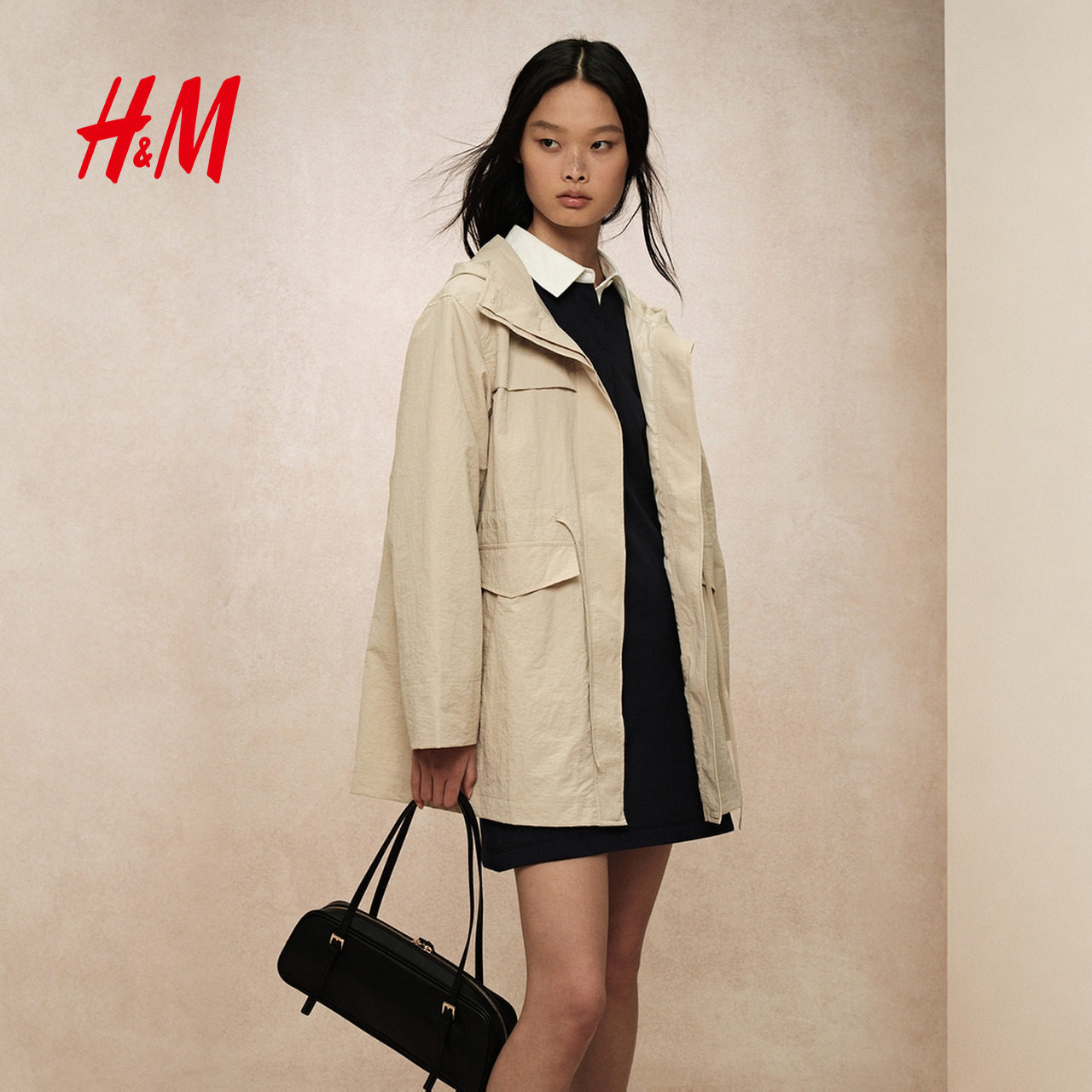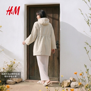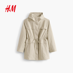工装 舒适中长款 连帽收腰轻薄外套1000018 风衣冬季 HM女装