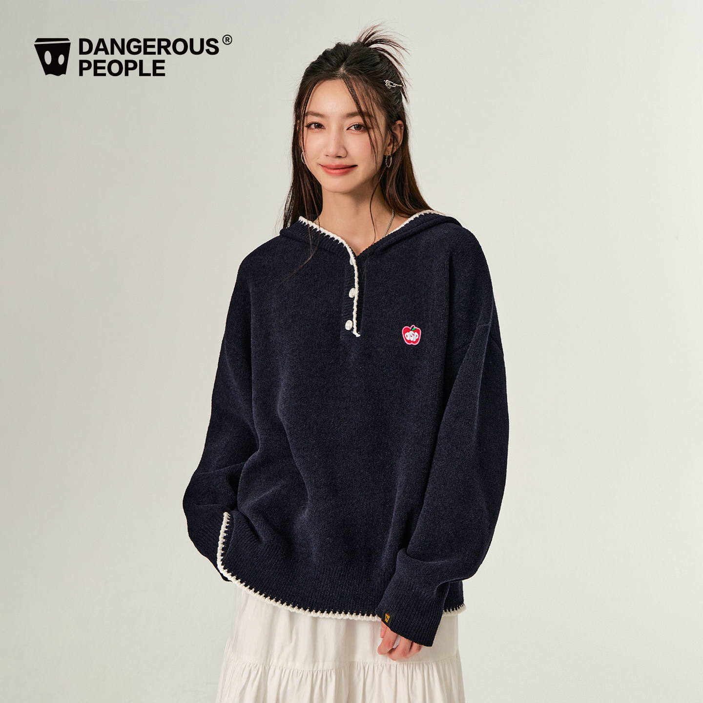 Dangerouspeople薛之谦dsp宽松软糯百搭潮学院风连帽毛衣针织衫 女