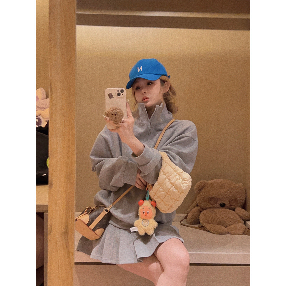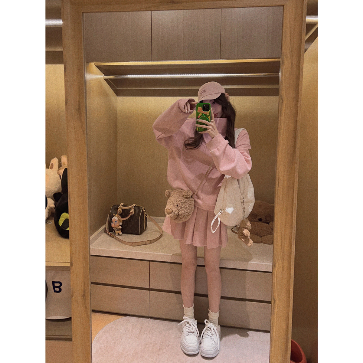 百褶短裙 半拉链立领卫衣 网球卫衣套装 Yukiss