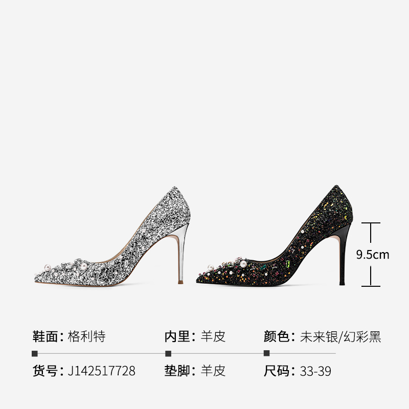 尖头细跟浅口单鞋 女2025秋冬新款 JOOC玖诗高跟鞋 婚鞋 星辰大海