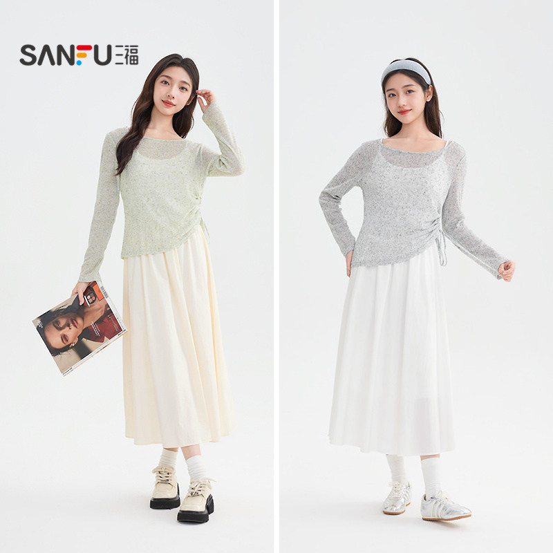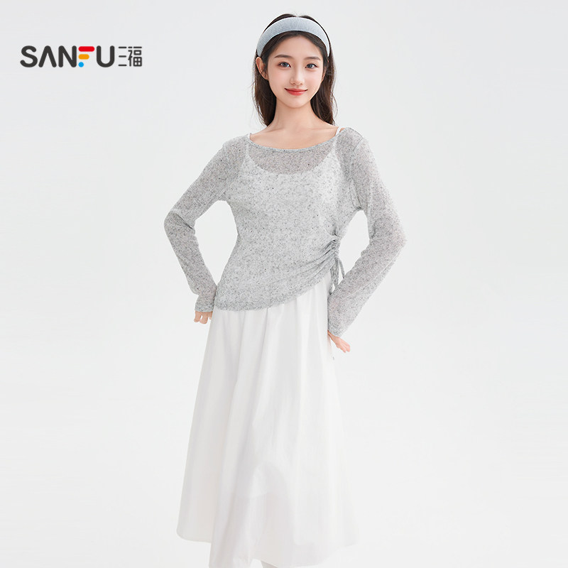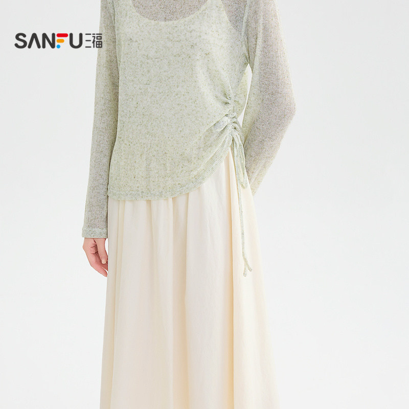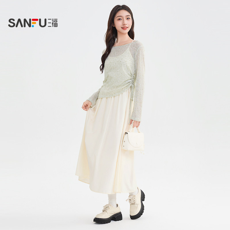 两件套裙子女装 侧边抽绳吊带裙罩衫 503624 三福连衣裙2025秋季