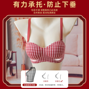 礼盒装 本命年红色内衣裤 女圆圆杯小胸聚拢防下垂新娘结婚文胸套装