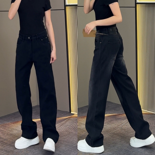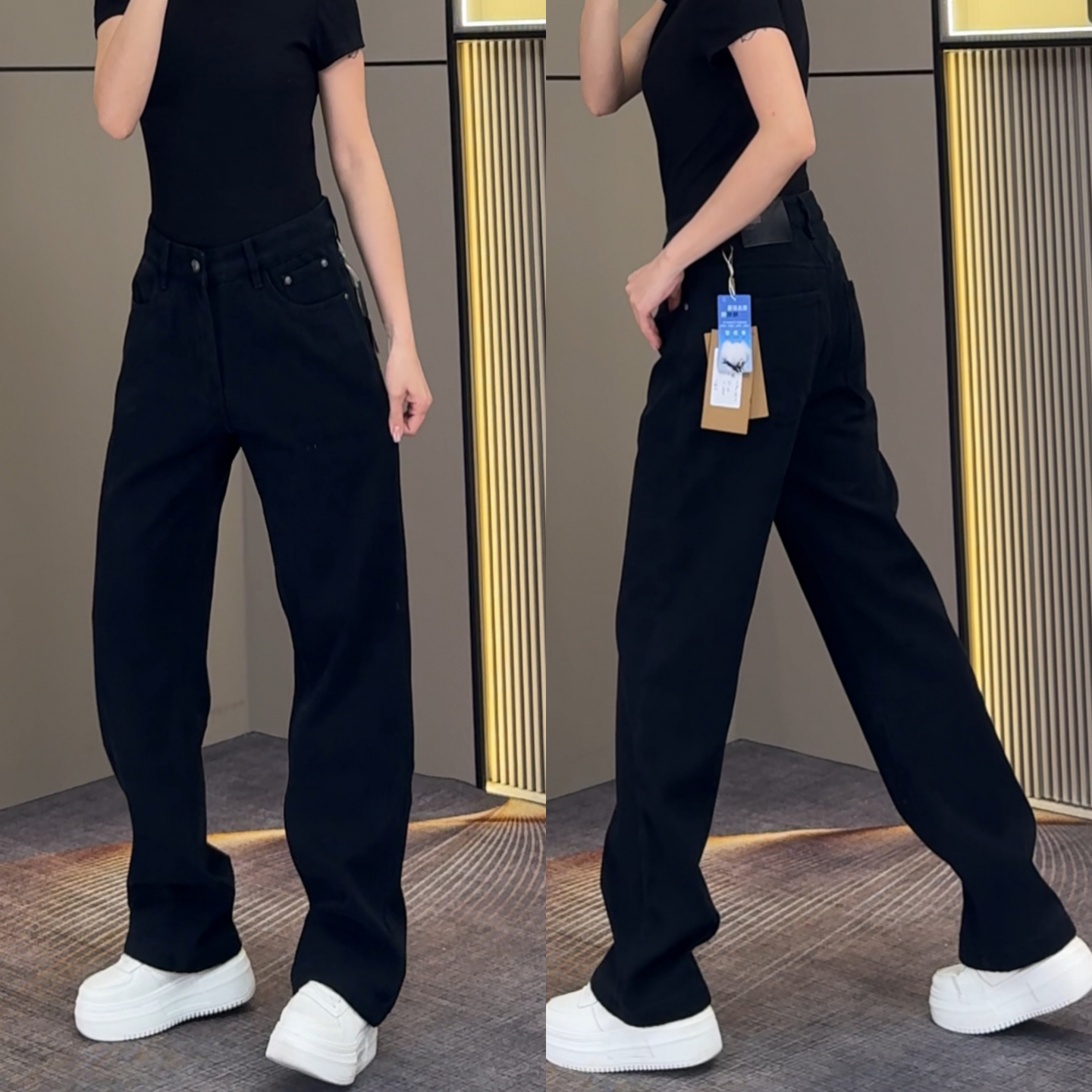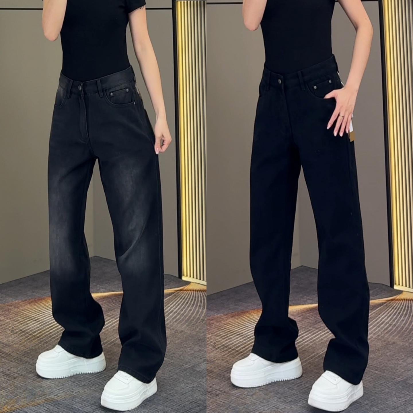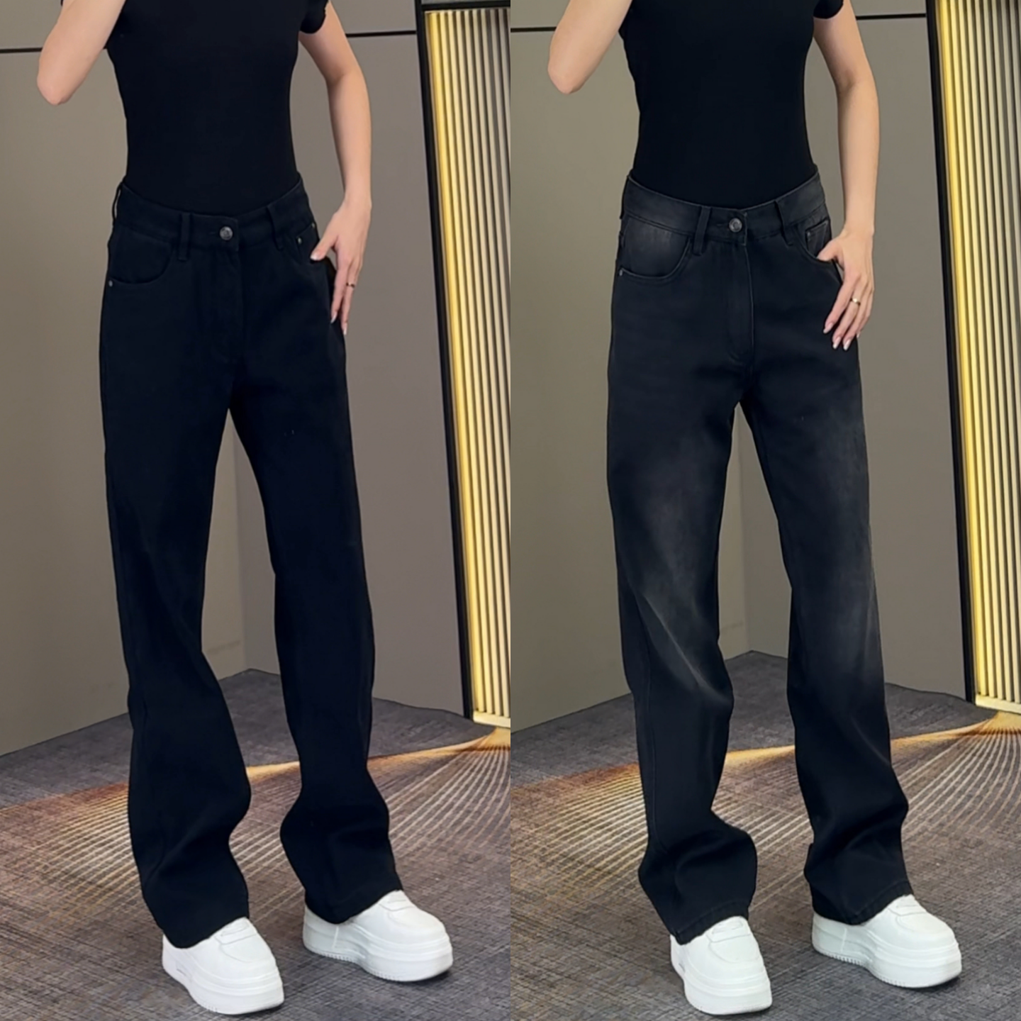 加绒保暖潮牌高级感百搭长裤 复古做旧男女款 冬季 直筒休闲裤 牛仔裤