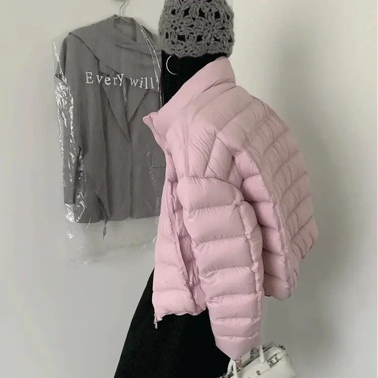 连帽时尚 小个子短款 保暖外套 秋冬季 90白鸭绒轻薄排骨羽绒服女短款