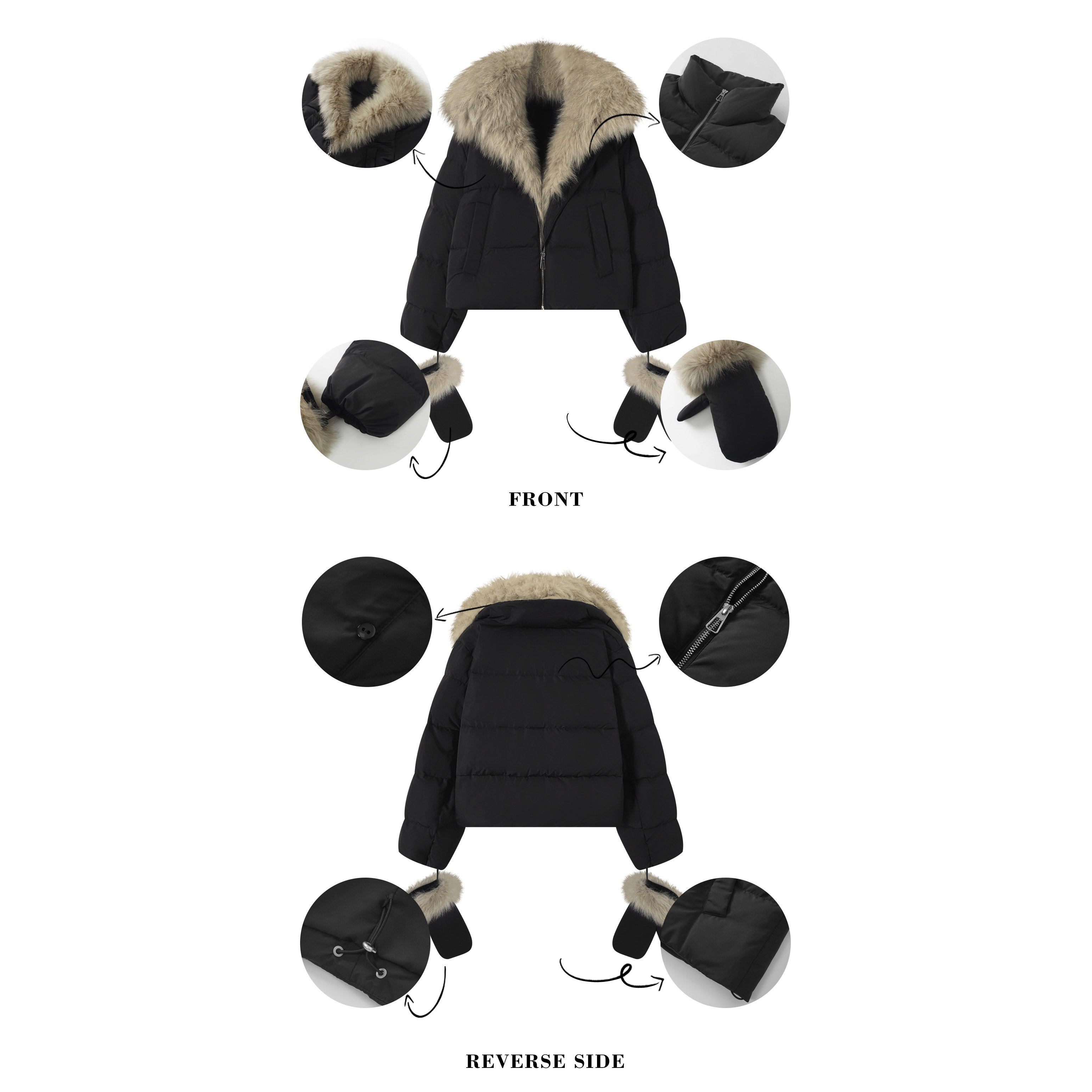 大毛领连帽收腰中长款 微胖mm冬季 加厚羽绒服 百分百女装 DM100大码
