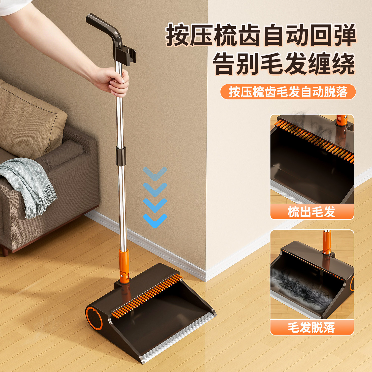 扫把簸箕家用套装 扫地扫帚垃圾铲组合不粘头发加长刮齿 2025新款