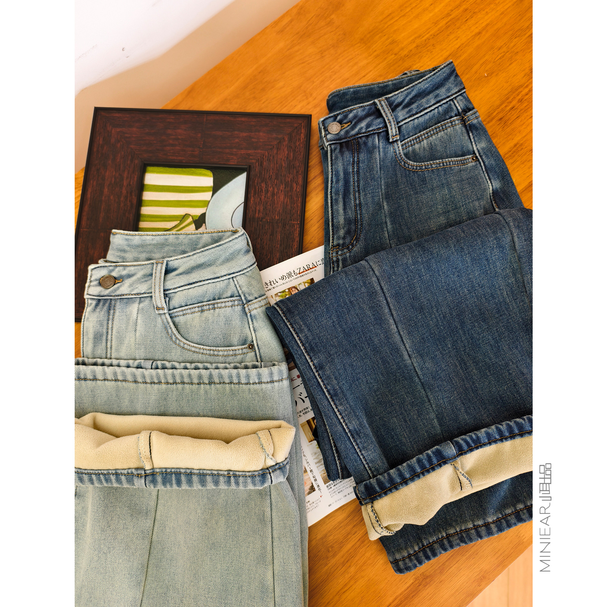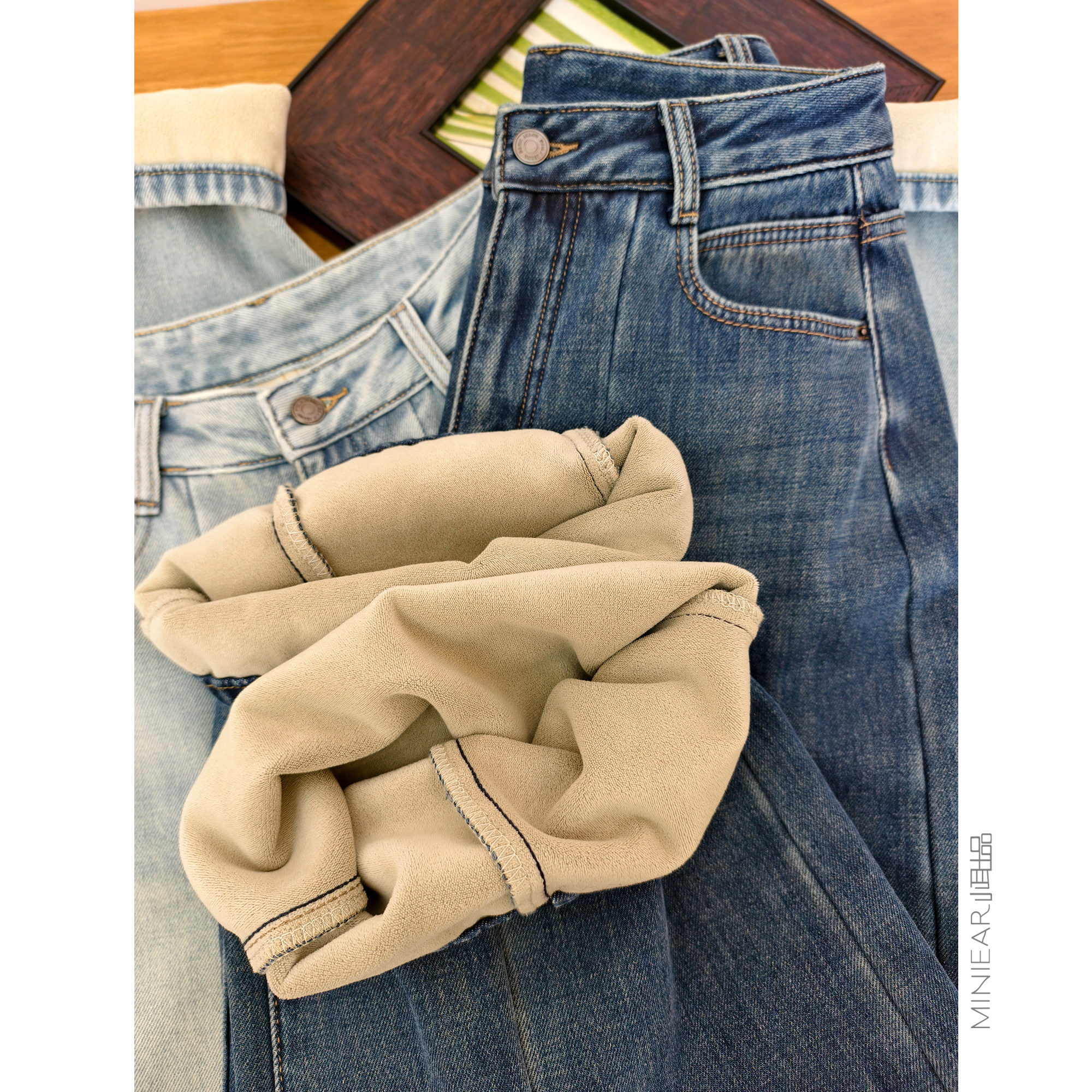 调性老爹裤 阔腿牛仔裤 篙支棉 加绒内里 女 分割中缝线 小耳出品