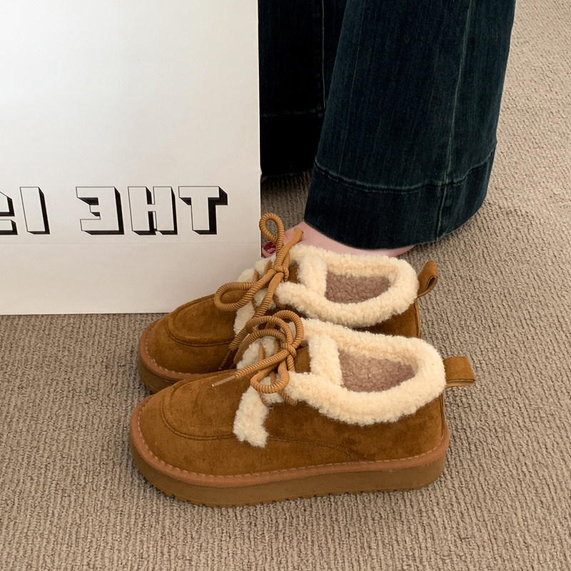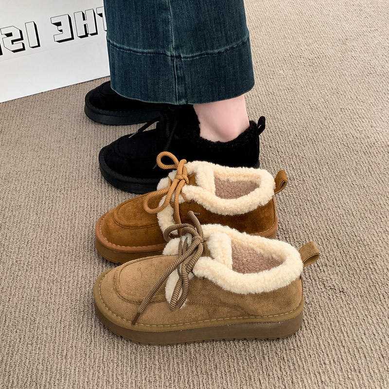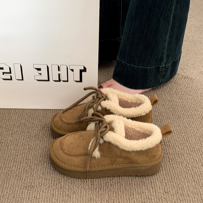 女鞋 毛毛棉鞋 子2025新款 雪地靴豆豆乐福鞋 冬季 平底加绒保暖勃肯鞋