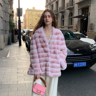 SXPC25059 加绒厚外衣女装 休闲保暖翻皮草外套2025年冬季 新款