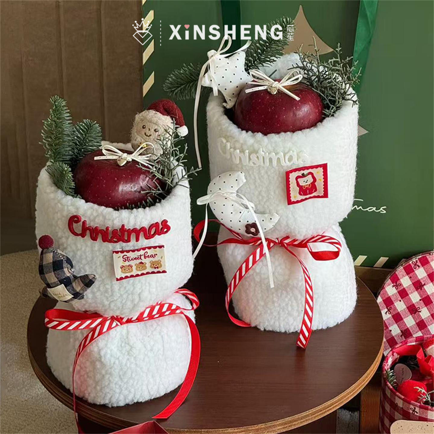 毛绒苹果布料diy自制氛围感礼物花店资材 芯苼物语 圣诞节新品