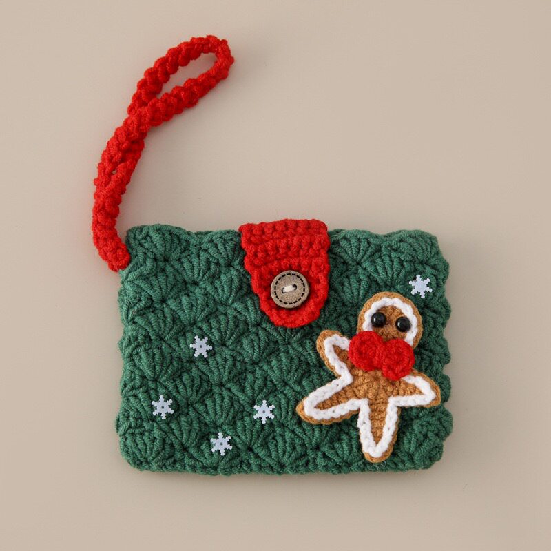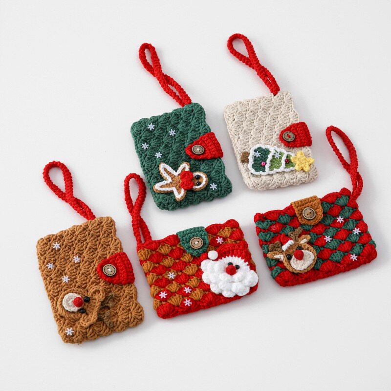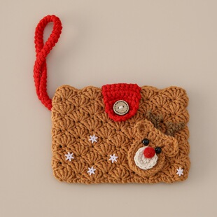 化妆镜包麋鹿新品 手工编织自制钩针成品毛线团送闺蜜礼卡包圣诞款