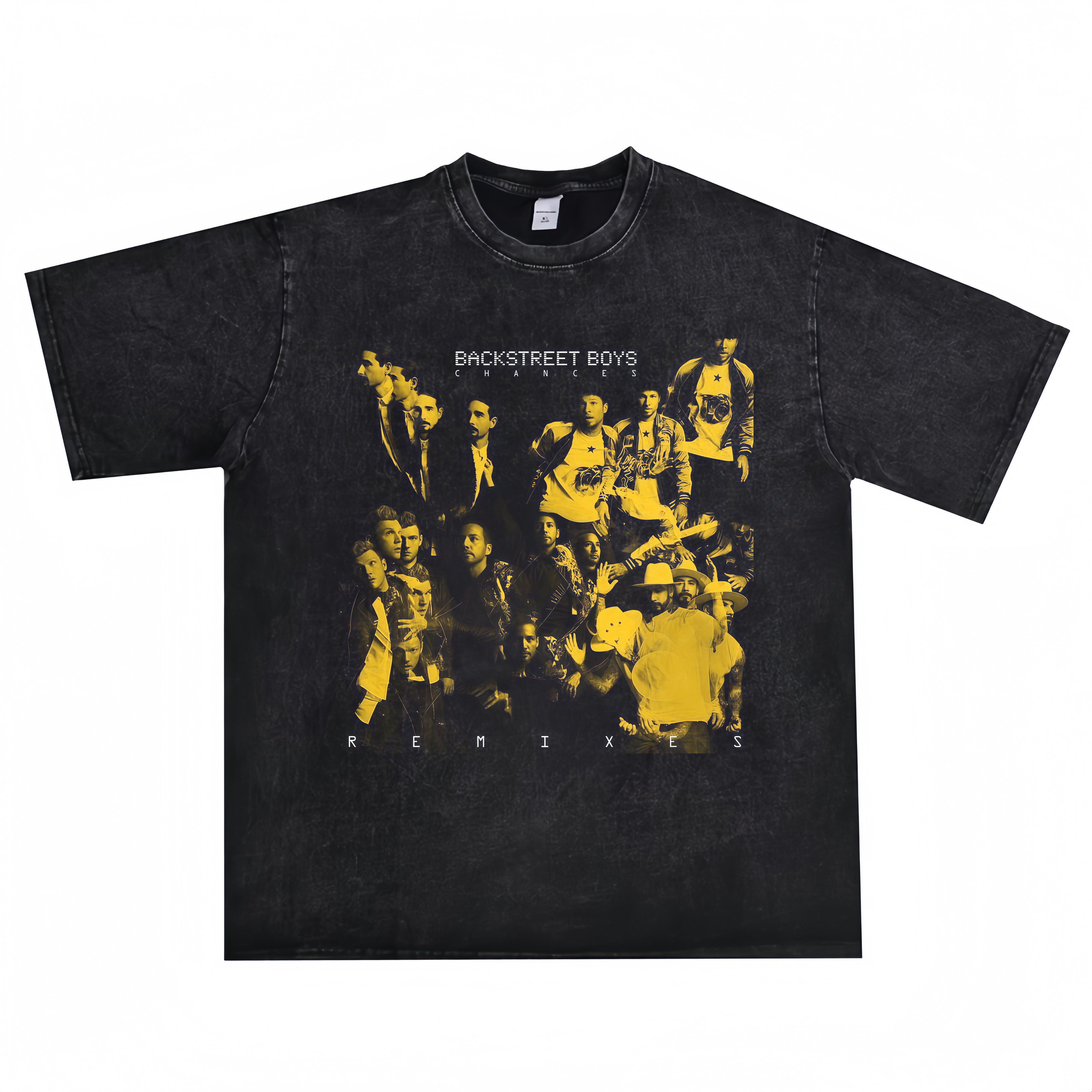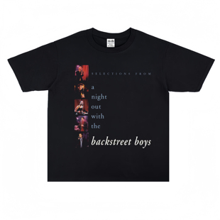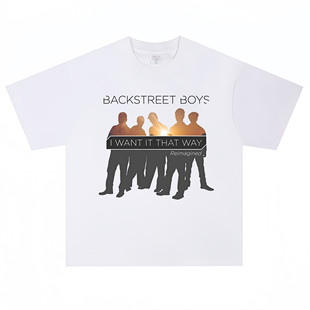 印花T恤宽松重磅纯棉美式 喷印摇滚后街男孩BACKSTREET BOYS短袖