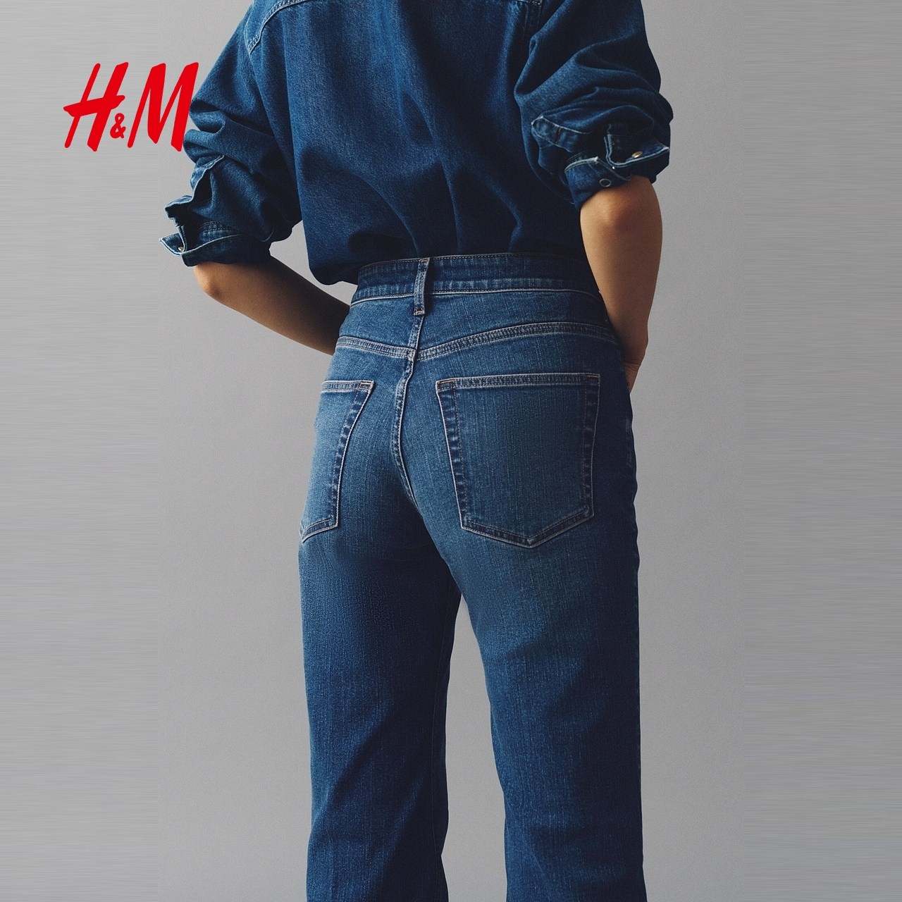 牛仔裤 高腰喇叭设计长裤 2025冬季 微紧身牛仔裤 1302894 新款 HM女装