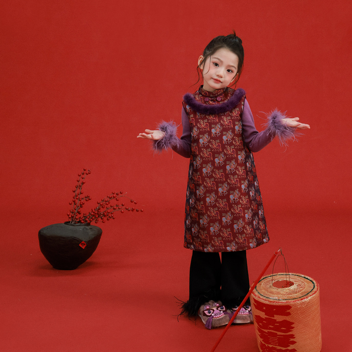 新中式 新款 国风显瘦改良旗袍裙 毛呢连衣裙女2025冬季 喜婆婆婚宴装