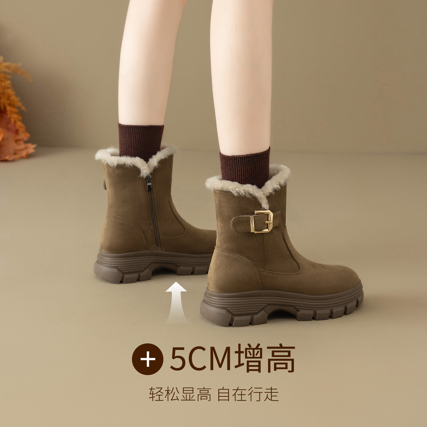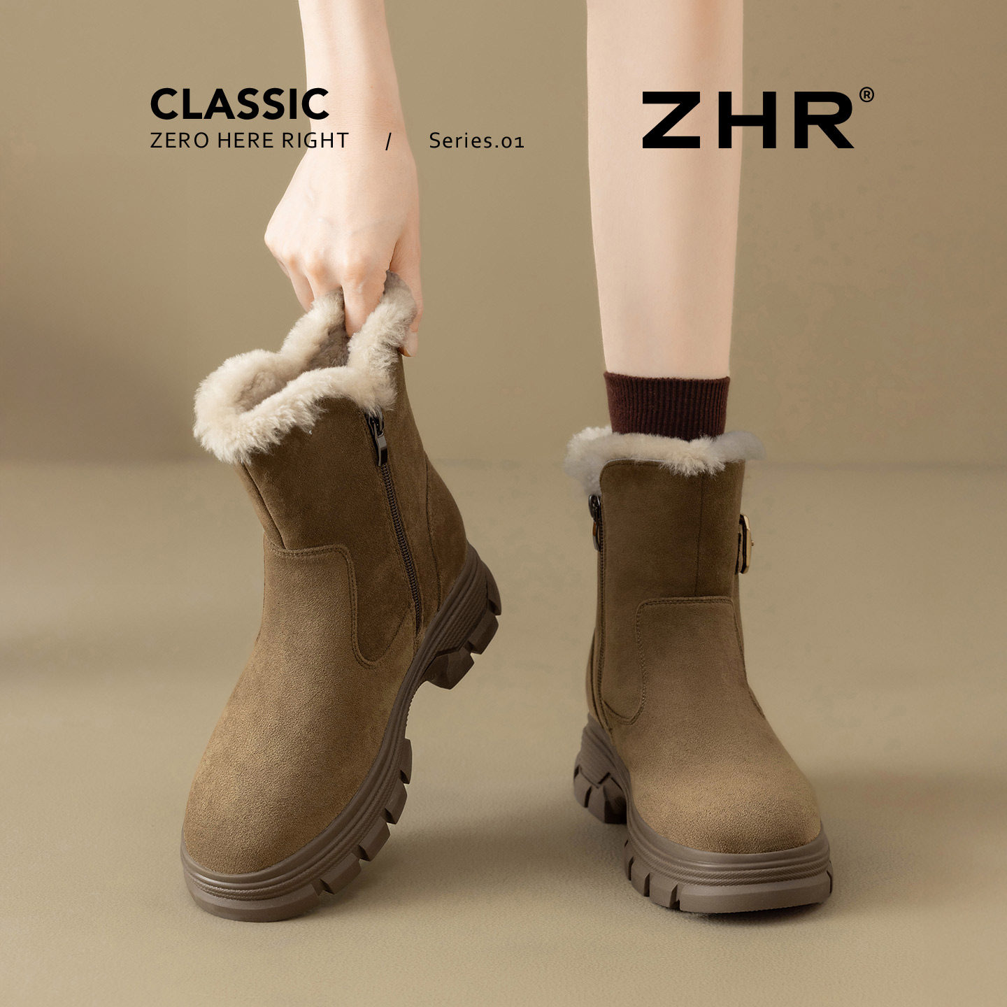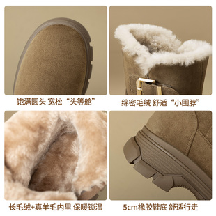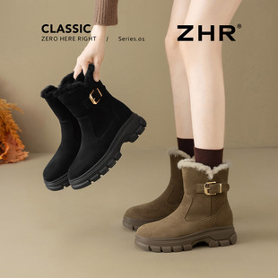 ZHR真皮雪地靴女2025冬季 厚底加绒雪地棉软底复古棕色马丁靴 新款