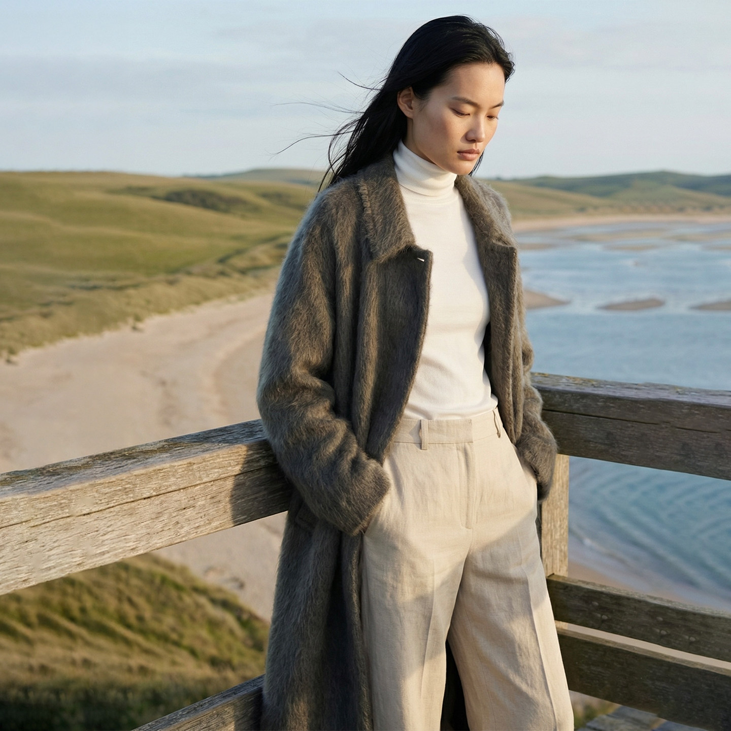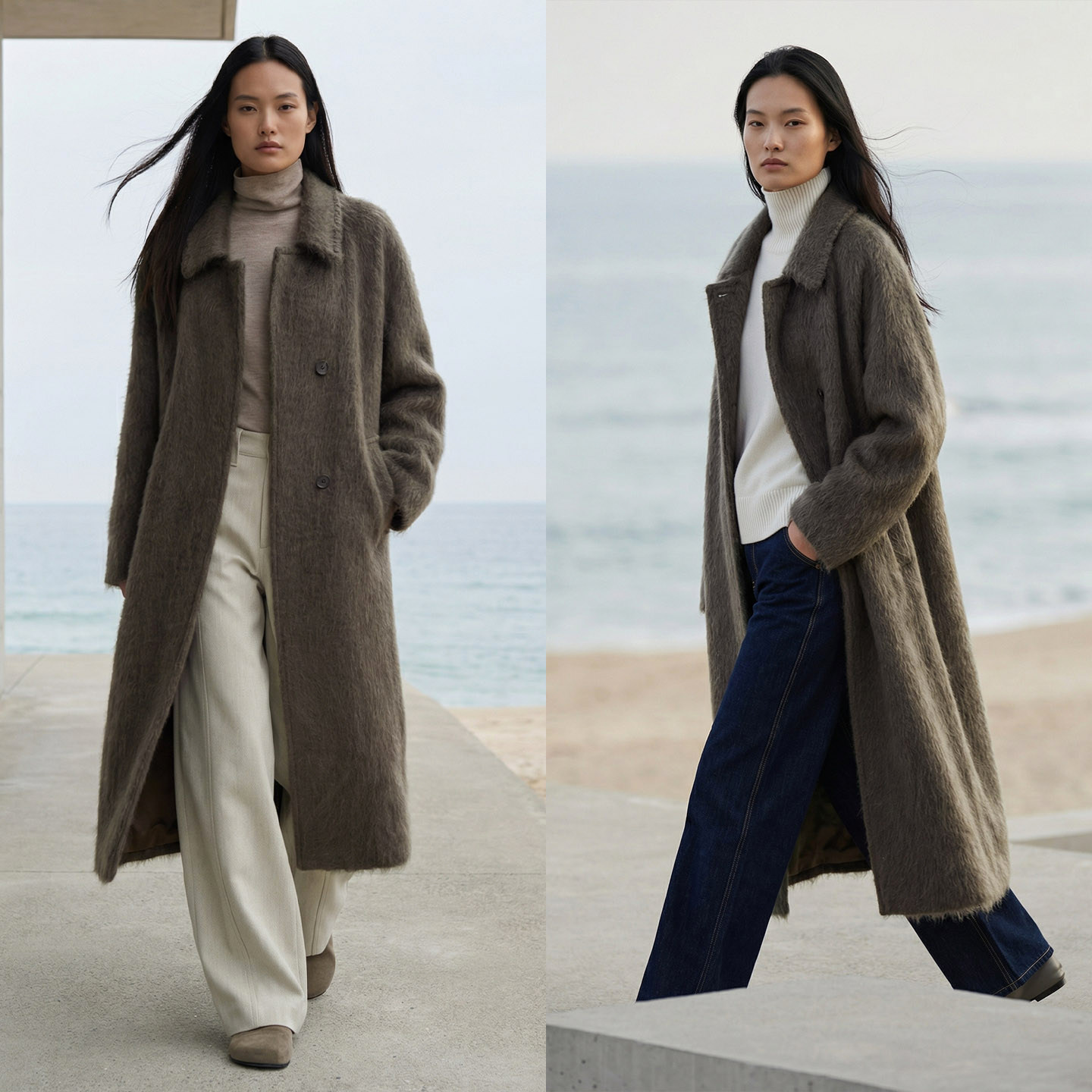 大衣 COMMON Nav」100%羊绒拉毛长款 灵 极简廓形呢子外套 VALUE「