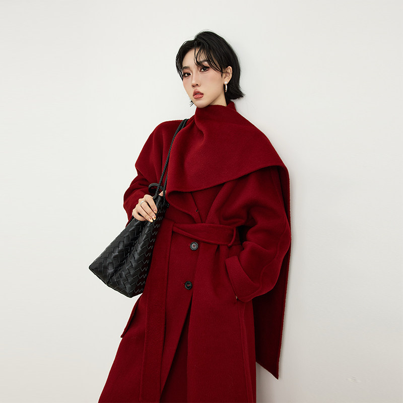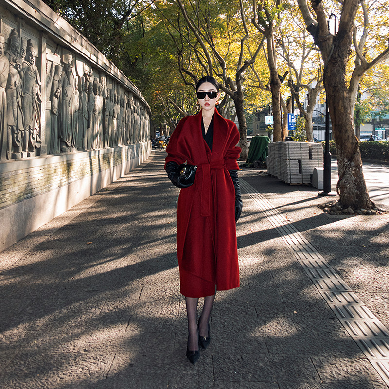 西装 过膝双面羊绒外套 领毛呢子风衣 中长款 纯羊毛双面呢大衣男士