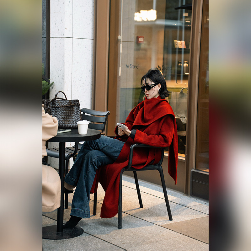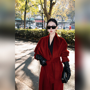 慵懒风双面羊毛大衣女中长款 灰色毛呢外套高级感
