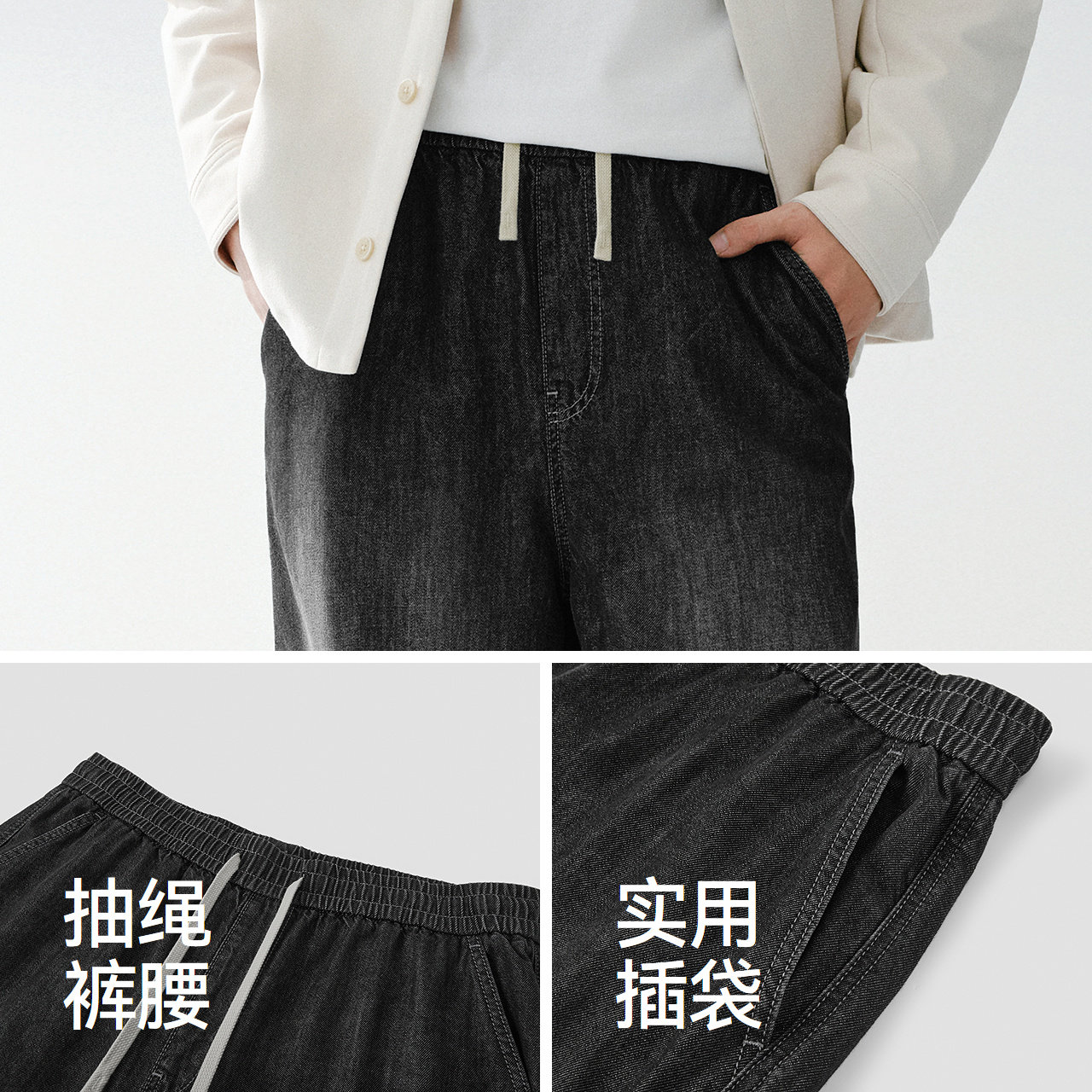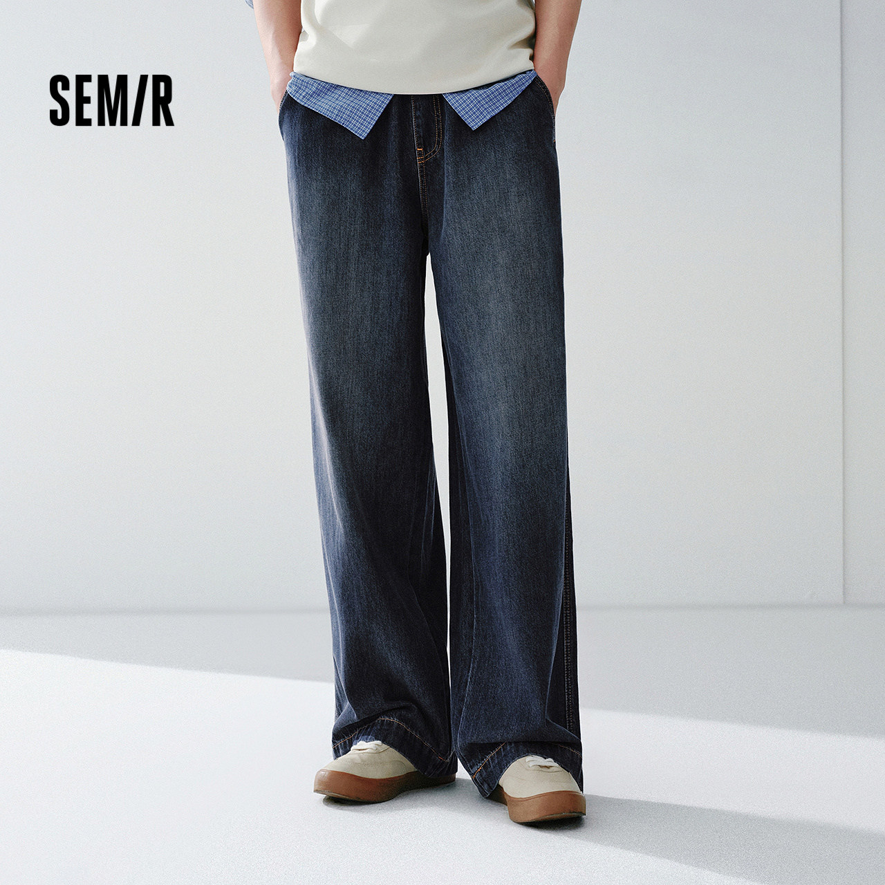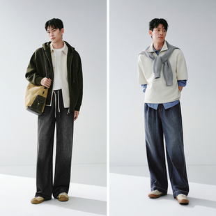 男款 松紧腰裤 宽松阔腿牛仔裤 2026春新款 子 基础百搭长裤 森马牛仔裤