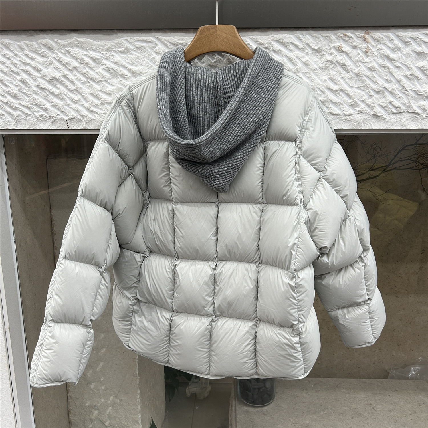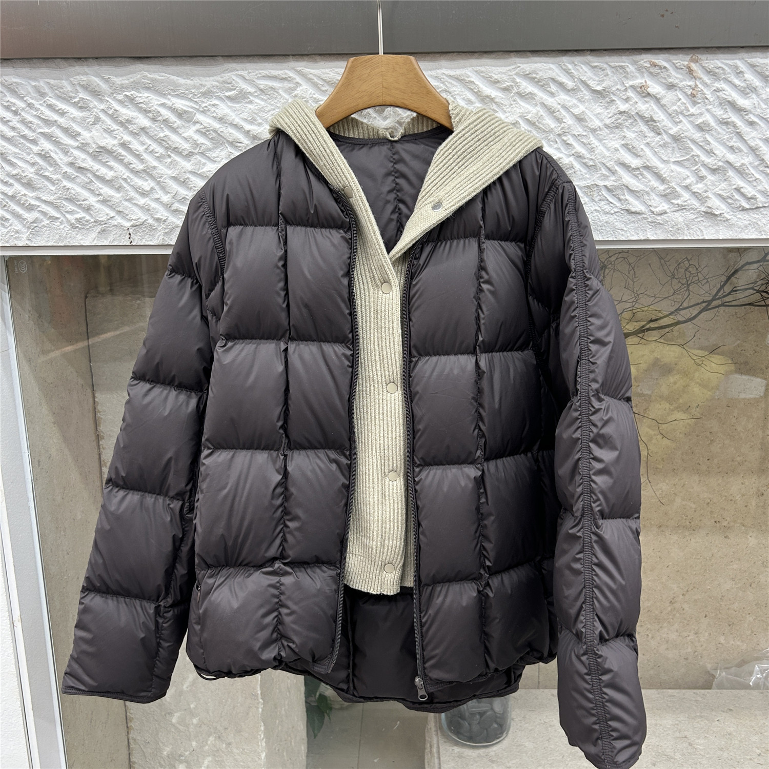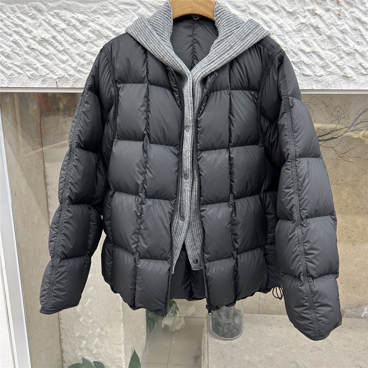 欧洲站欧货新款 假两件外套潮 针织连帽90白鹅绒羽绒服女面包服时尚